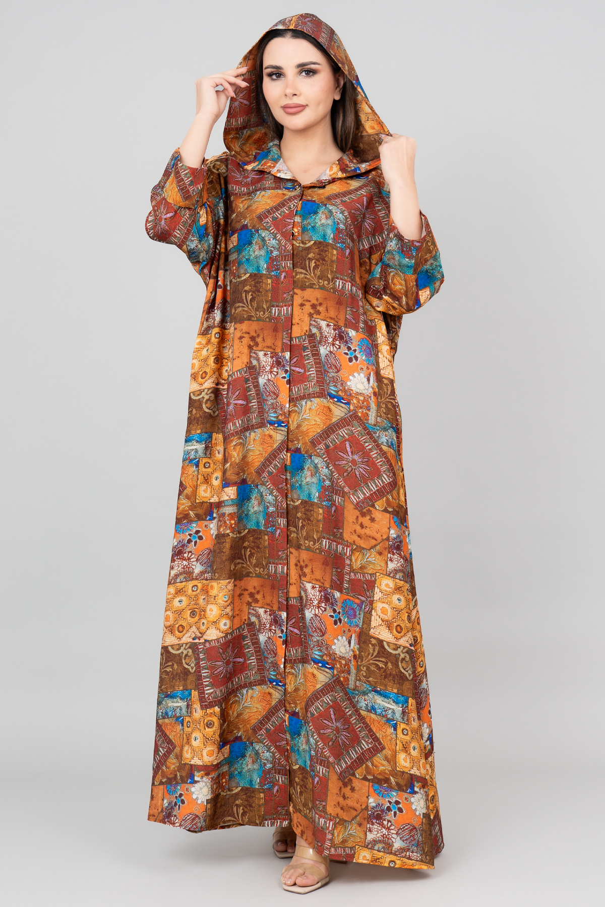 ميزات جلابية بغطاء للرأس مطبوعة بنمط من IKKXA