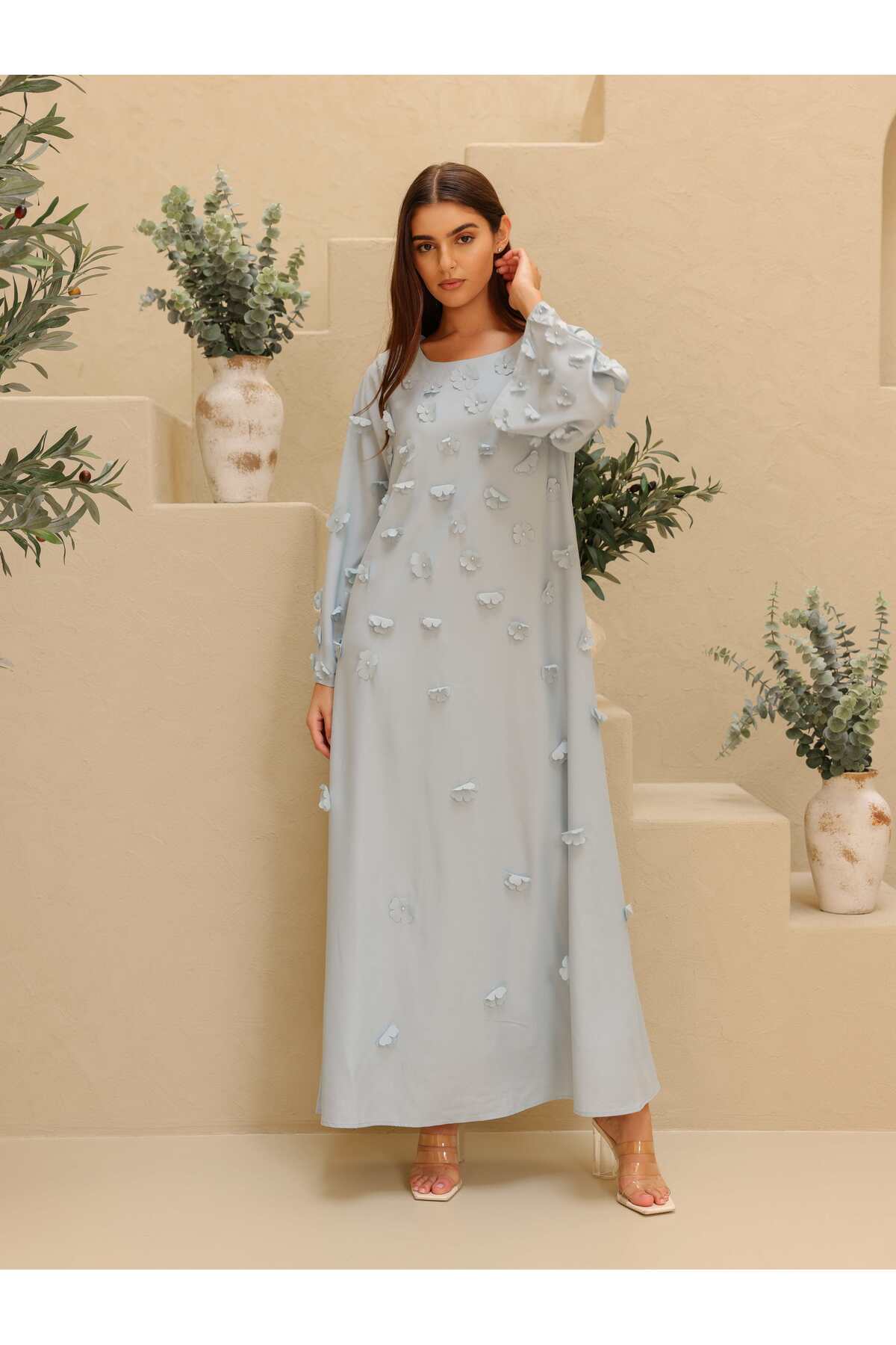 ميزات جلابية أنيقة مزينة بزهور ثلاثية الأبعاد من IKKXA