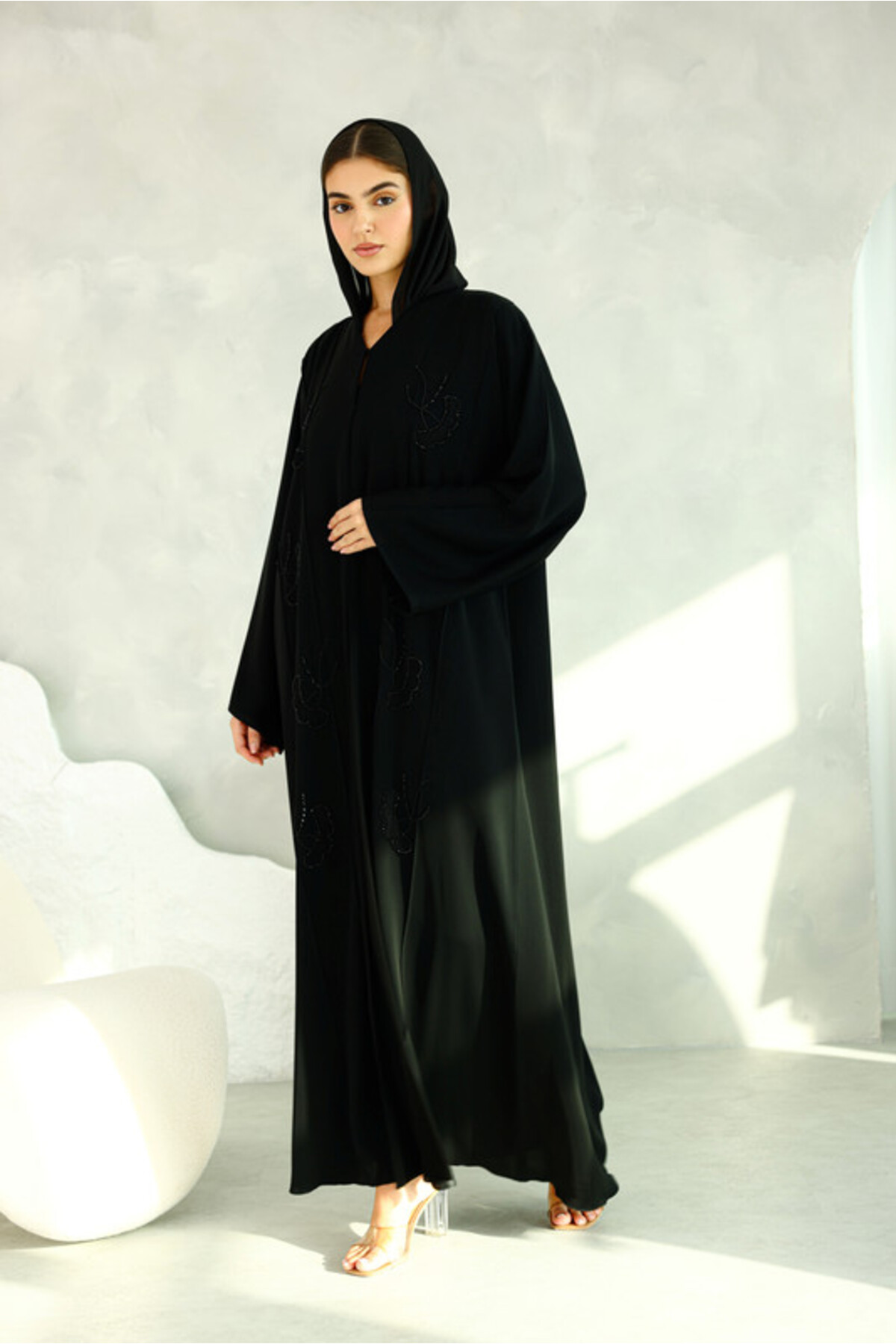 ميزات عباية سوداء سادة مطرزة بالخرز من IKKXA