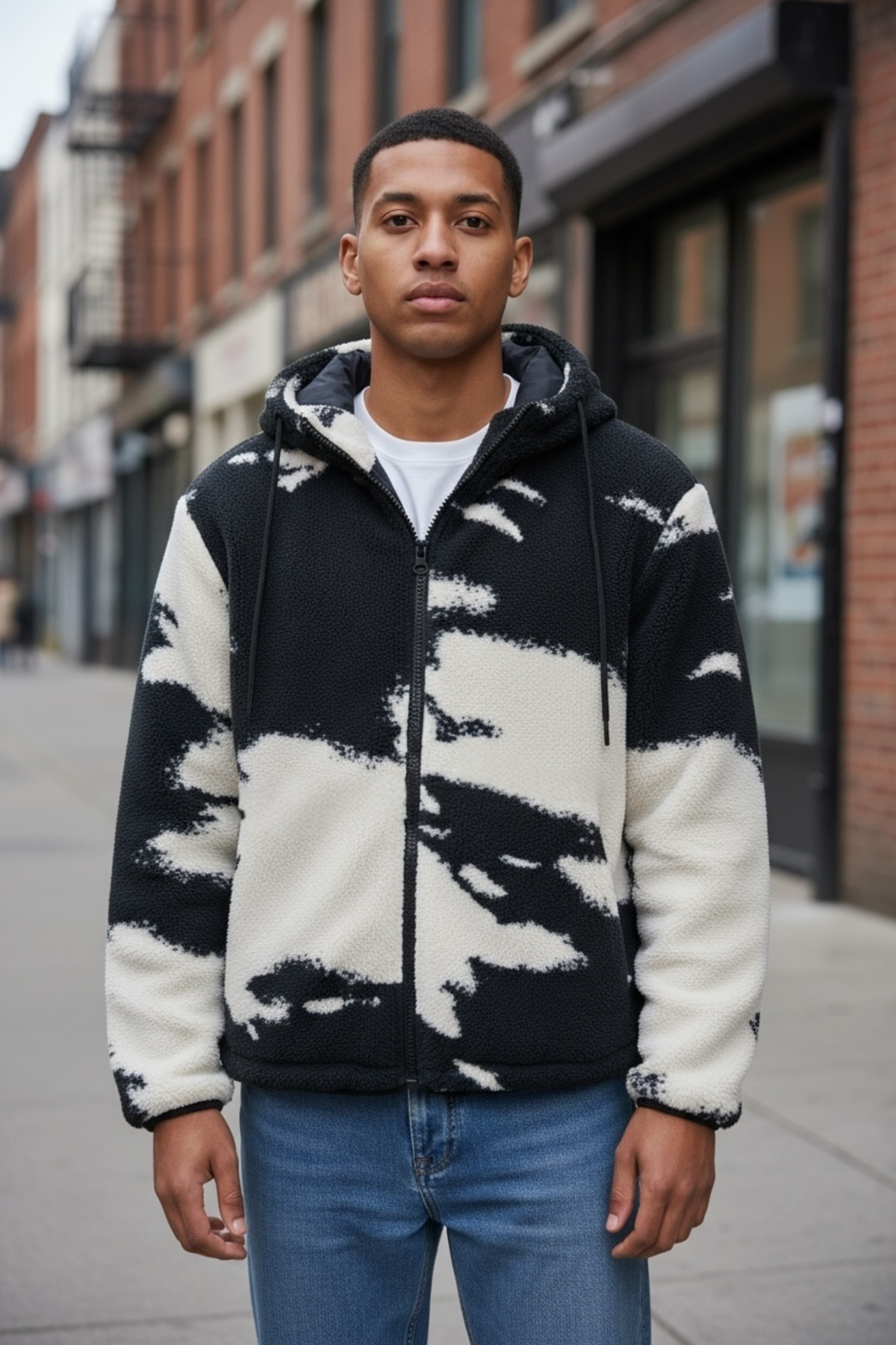 İLKCET MODA معطف من القطيفة بغطاء رأس مبطن باللون الأسود منقوش على شكل سحابة