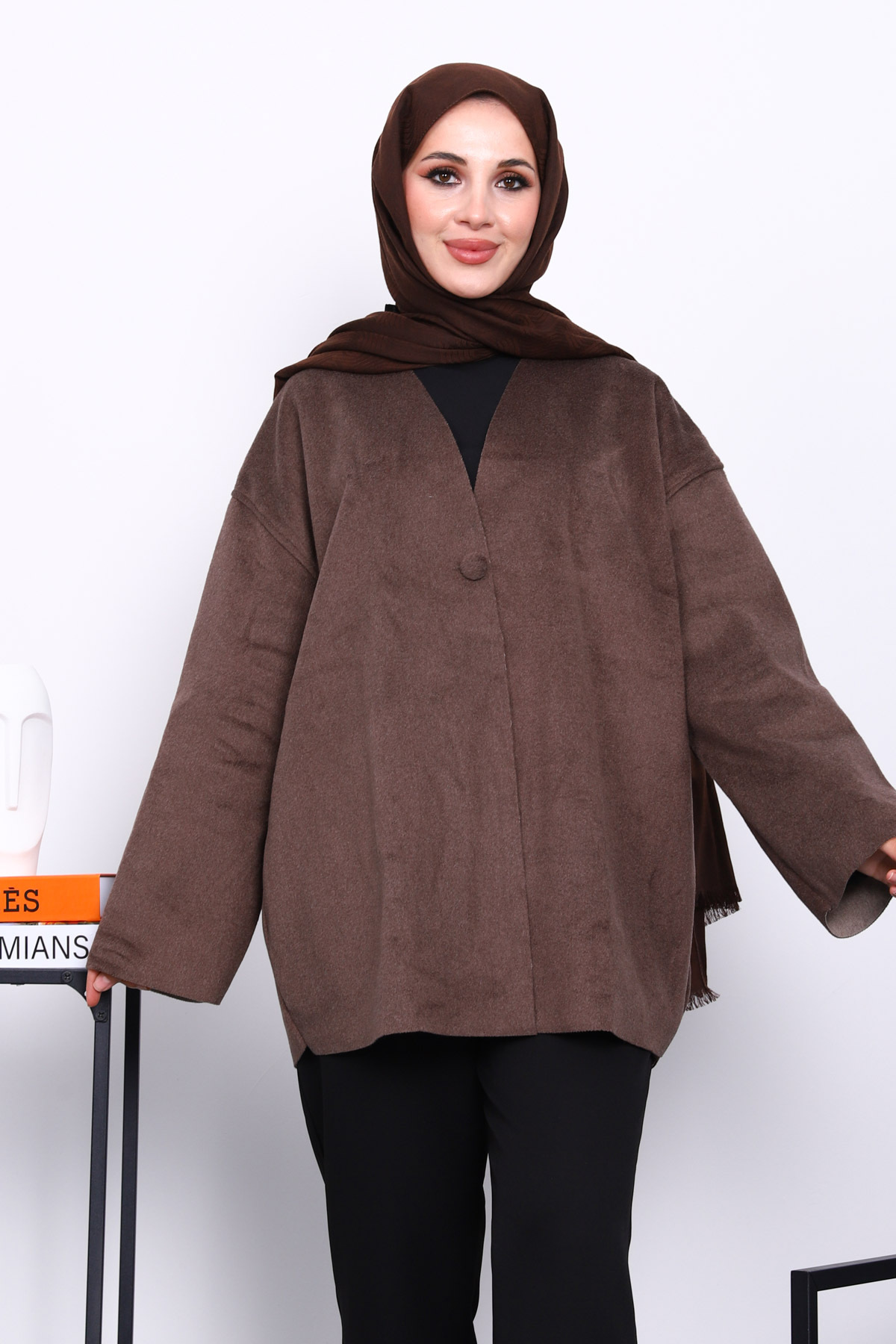 ميزات سترة بنية اللون بزر واحد من İmajButik