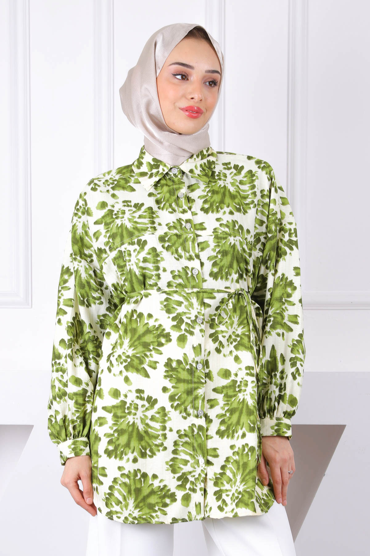ميزات قميص بأزرار منقوشة باللون الكاكي من İmajButik