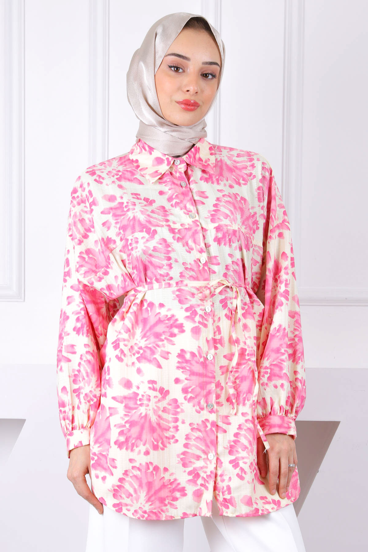ميزات قميص بأزرار منقوشة باللون الوردي من İmajButik