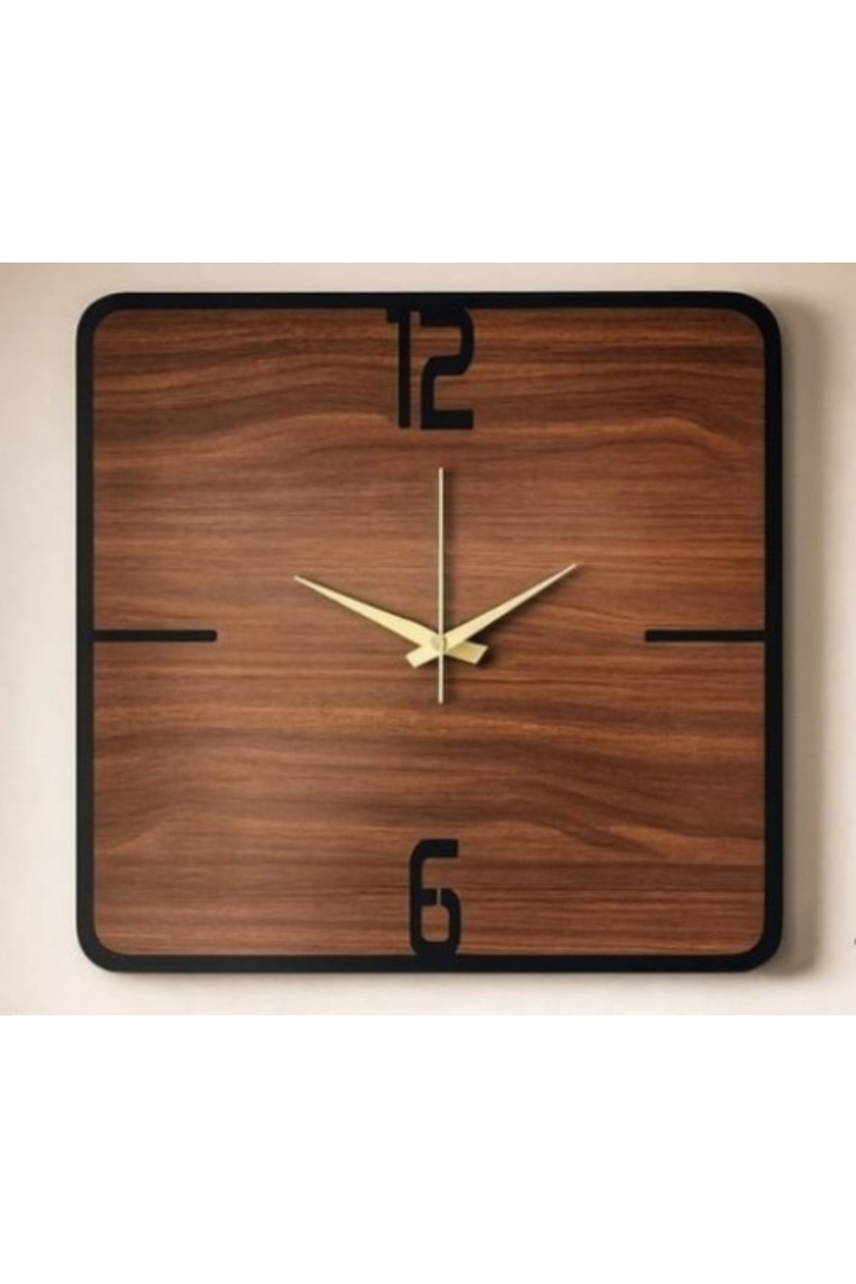 İN3DEX ساعة حائط بتصميم بسيط بإطار أسود من خشب الجوز منقوش