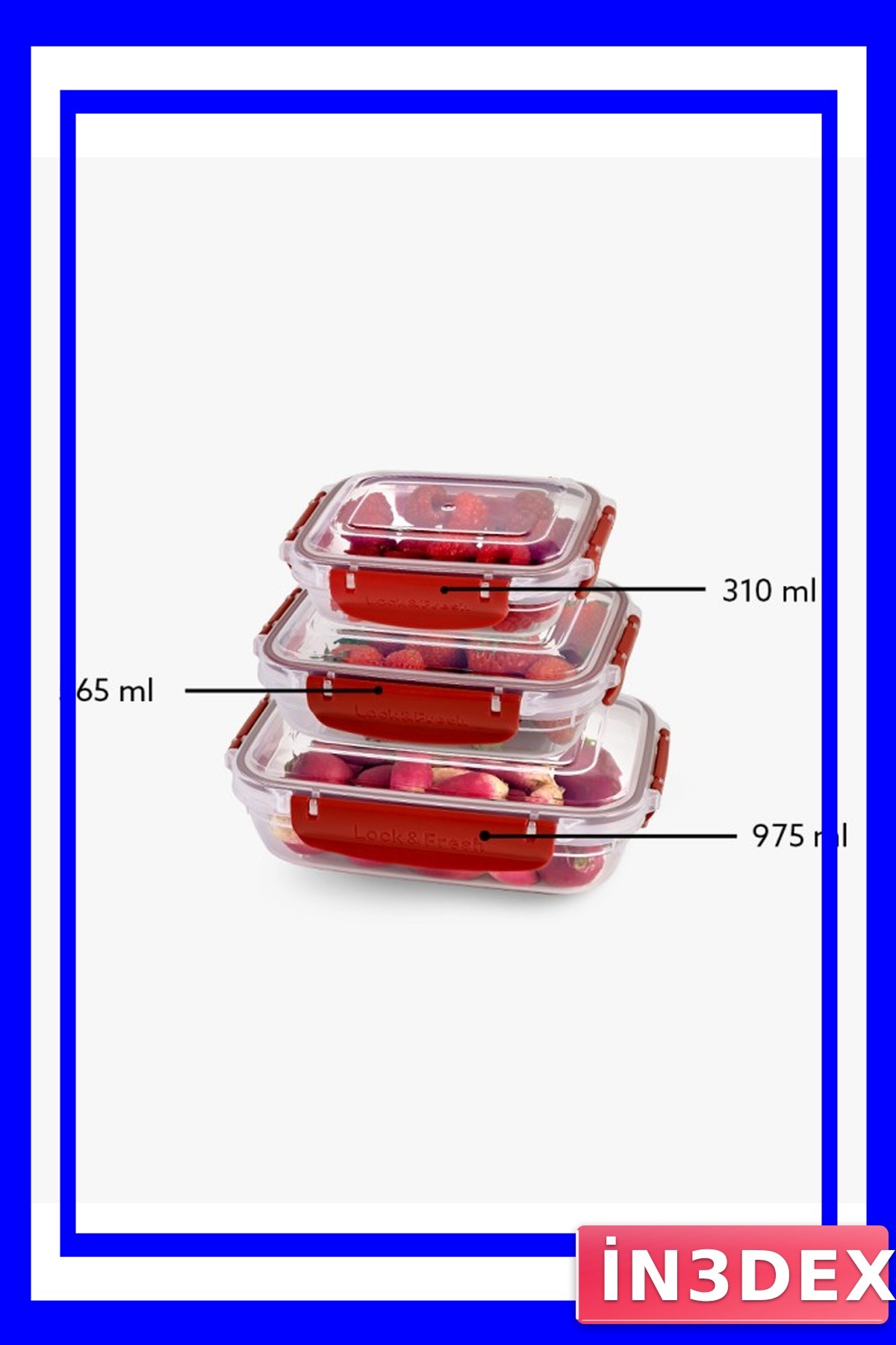 İN3DEX مجموعة تخزين الطعام على شكل مستطيل مكونة من 3 قطع