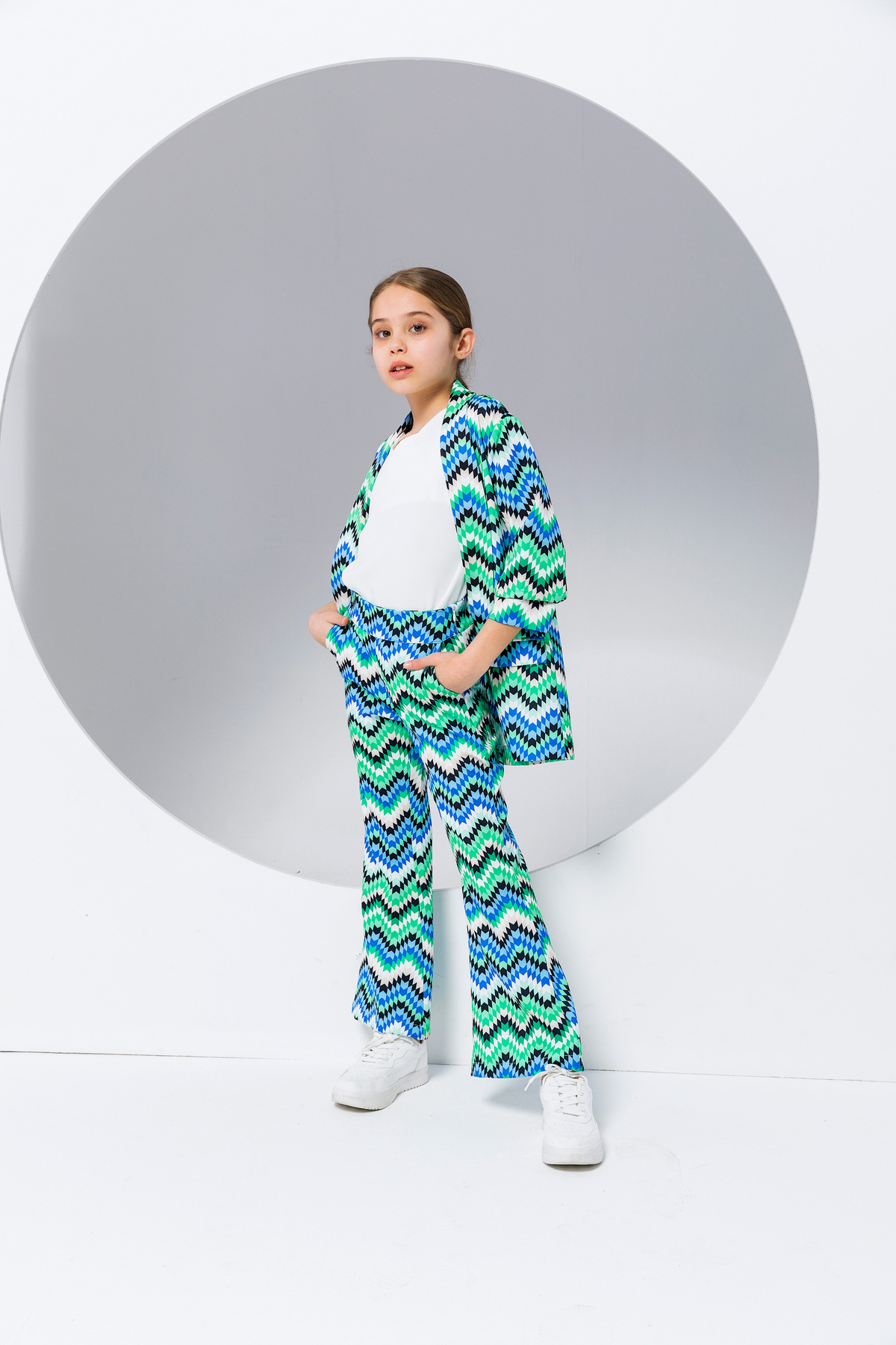 ميزات بنطلون زجزاج منقوش واسع الأرجل للفتيات من incity