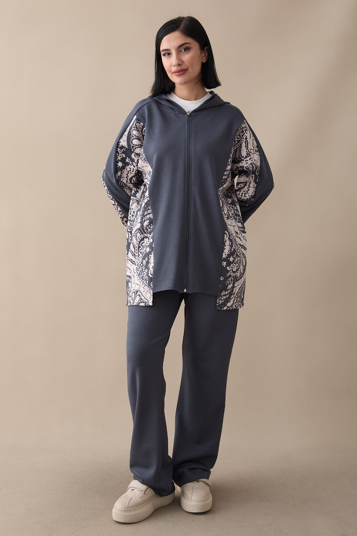 InStyle بقطع قماش مخيطة معاً طقم مودال مزدوج بنمط شال أنثراسايت