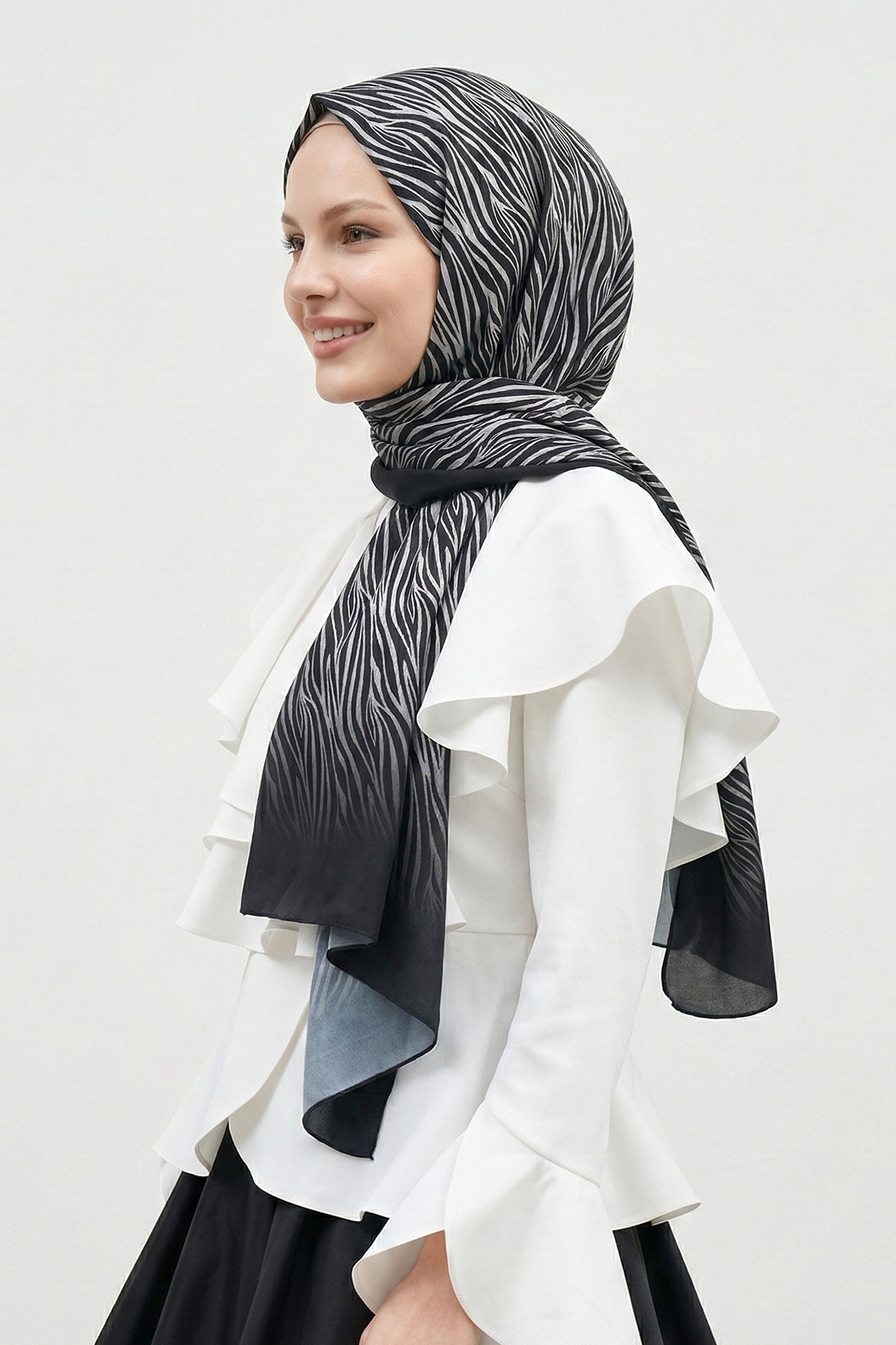 ميزات شال زيبرا منقوش رمادي ناعم قطن من InStyle