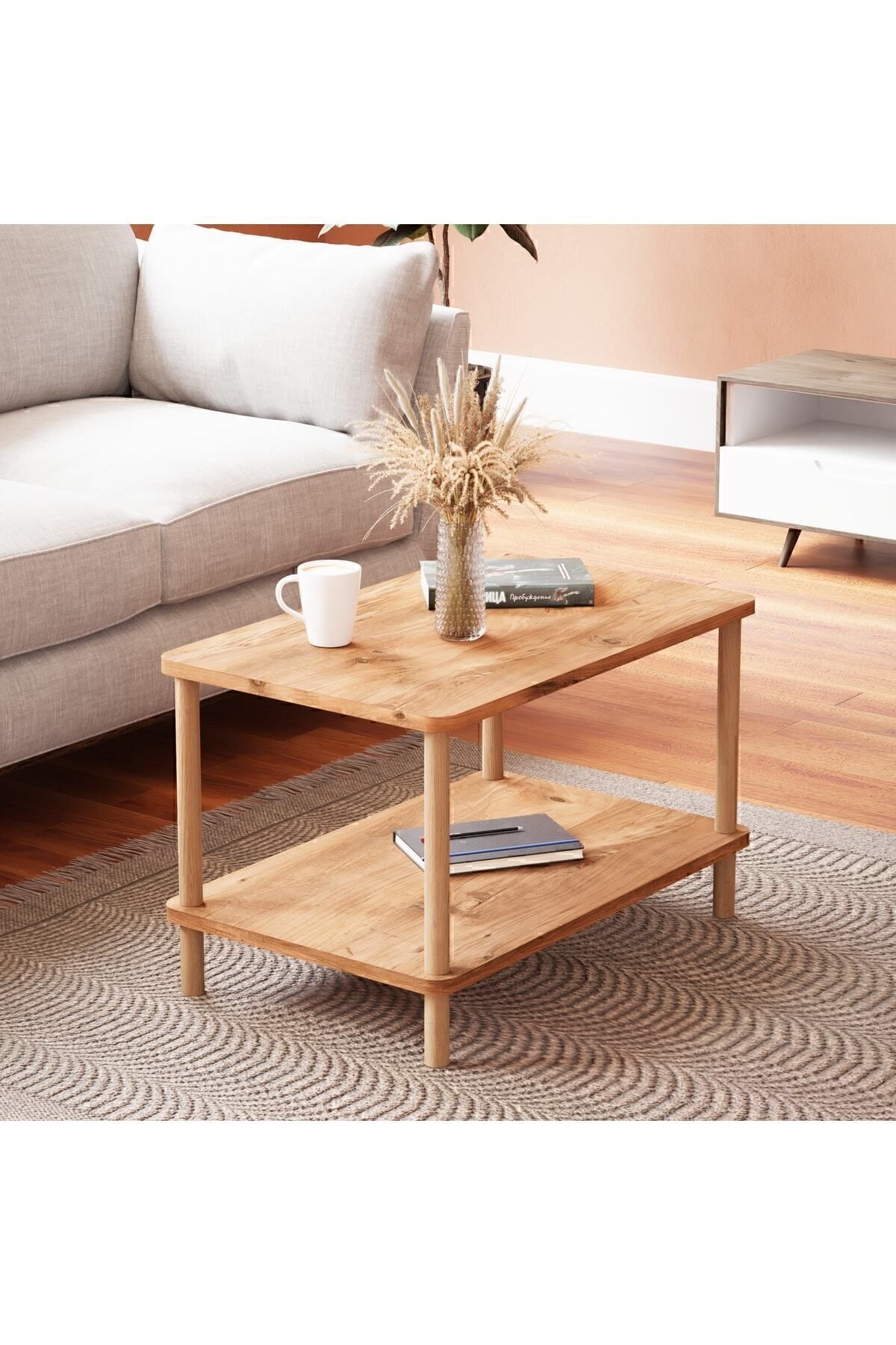 interGO طاولة مركزية بأرجل خشبية مستطيلة - نقشة الصنوبر الأطلسي