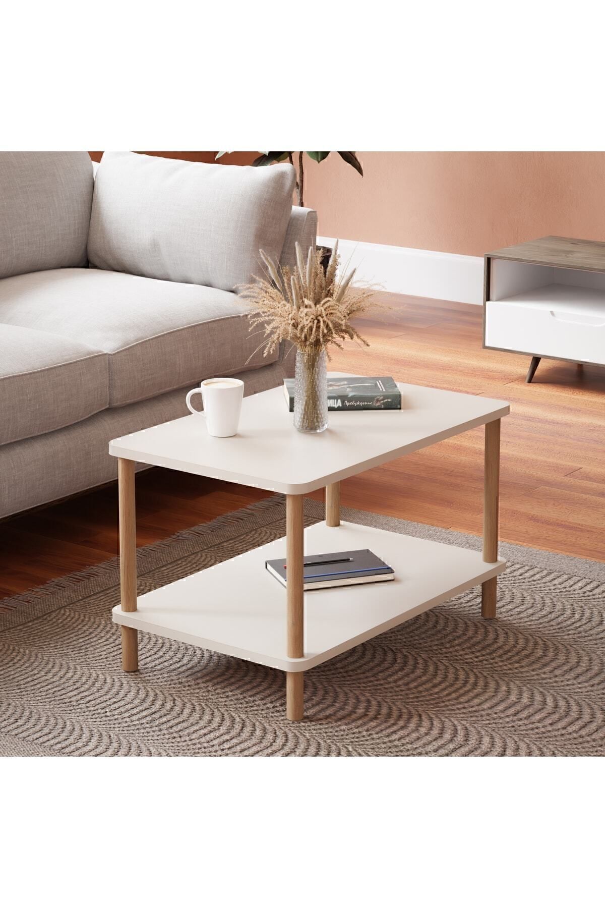 ميزات طاولة مركزية بأرجل خشبية مستطيلة - أبيض من interGO
