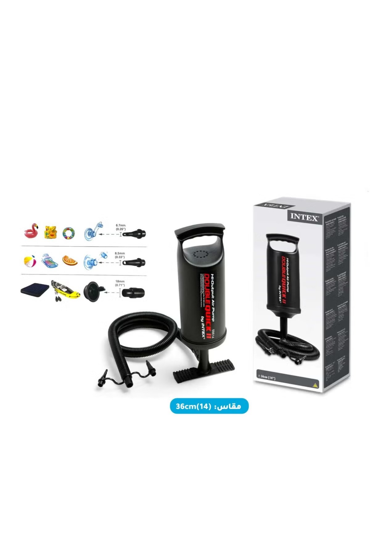 ميزات مضخة يدوية مزدوجة سريعة - 36 سم محمولة وفعالة من Intex