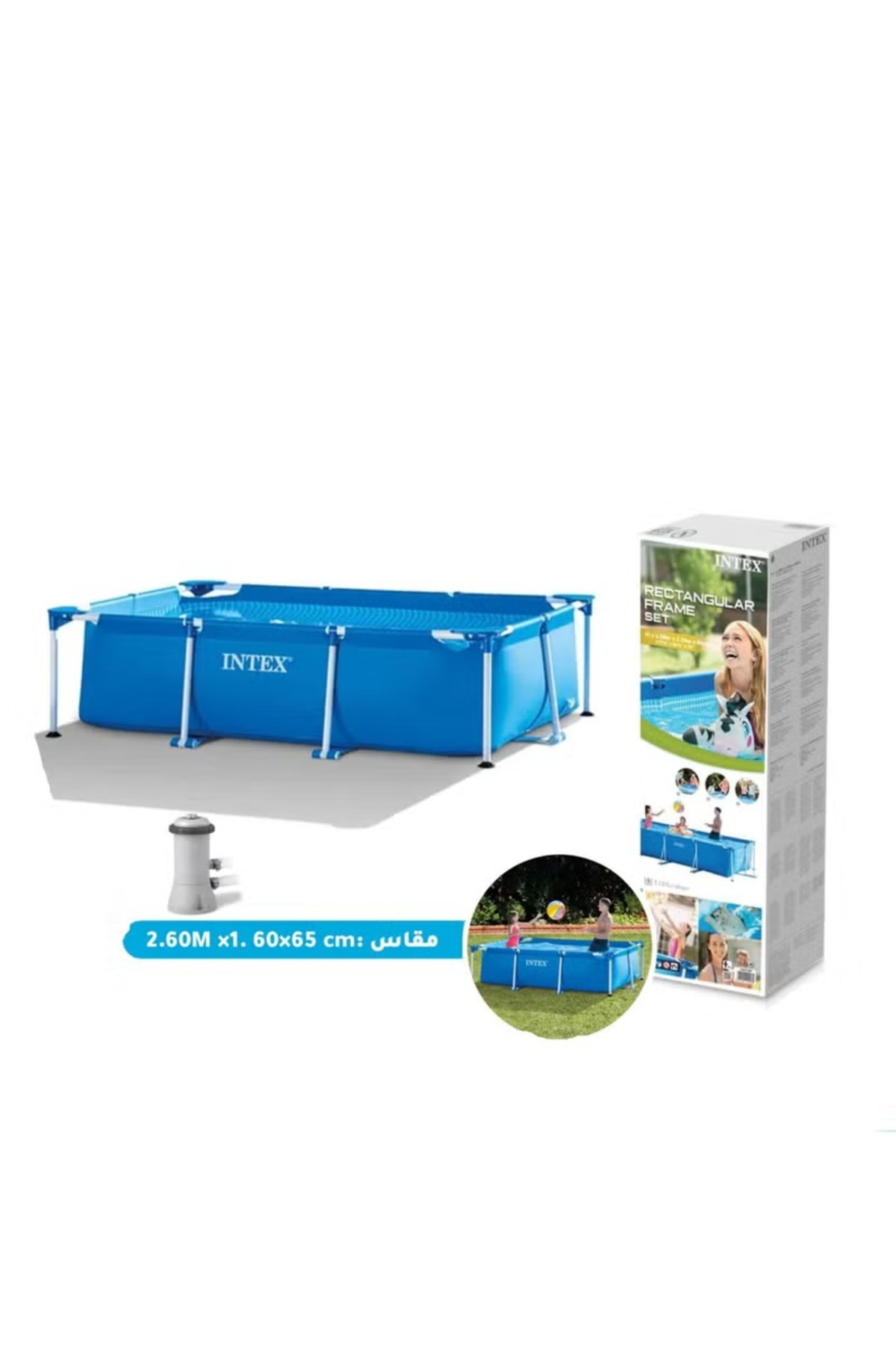 ميزات حوض سباحة مستطيل الشكل فوق الأرض 260x160x65 سم من Intex