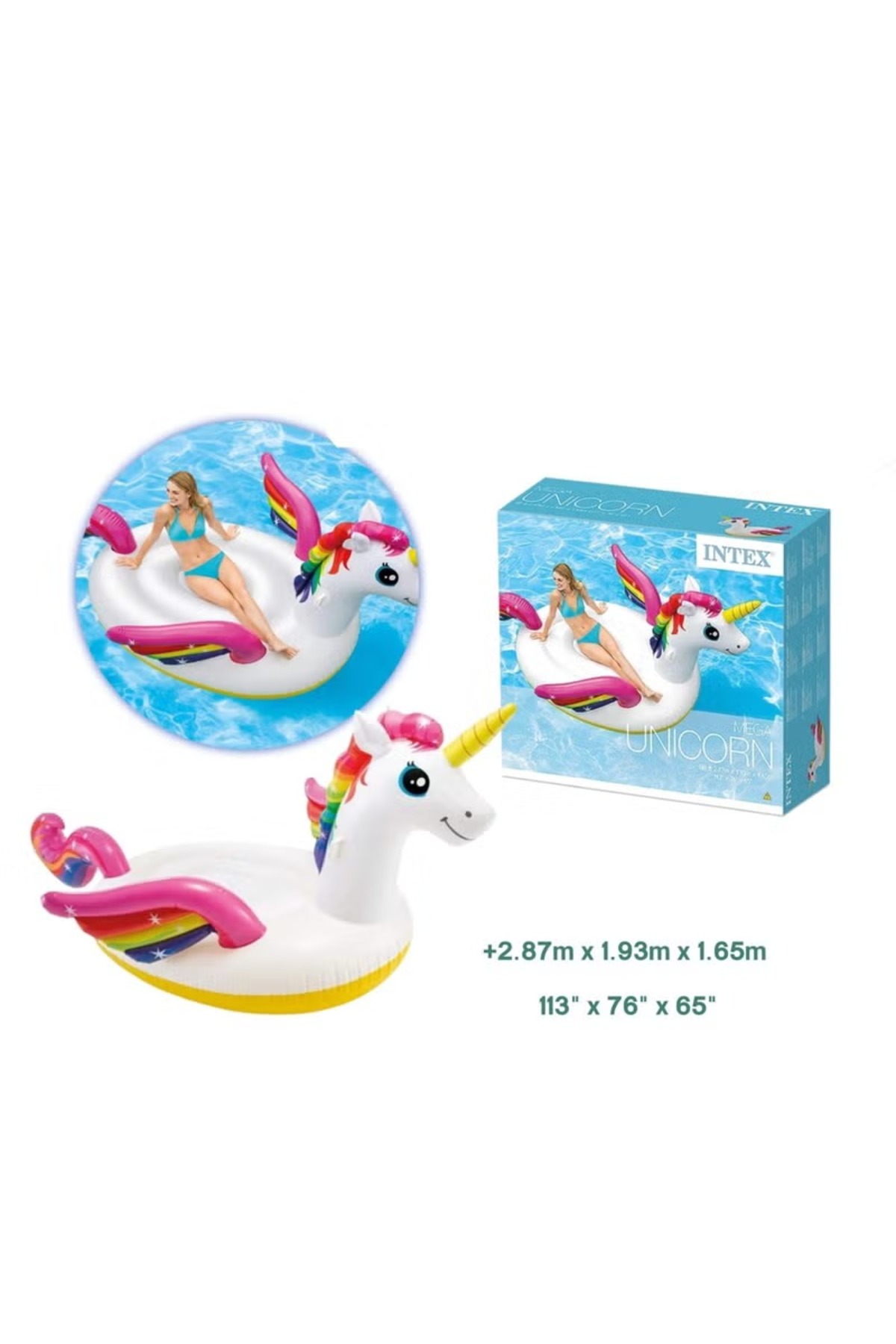 Intex عوامة سباحة قابلة للنفخ على شكل وحيد القرن - ملونة ومتينة