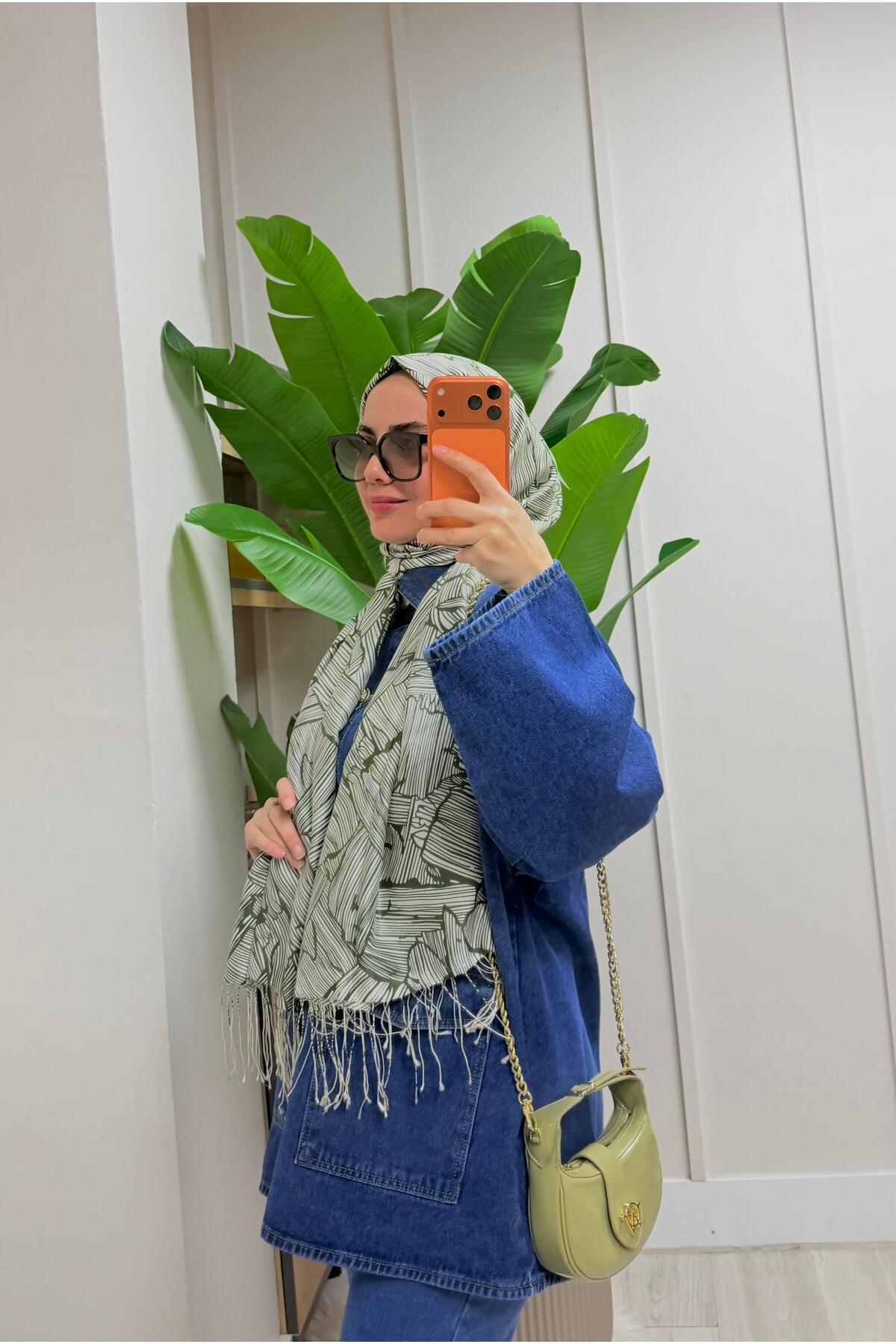 ميزات شال حريري منقوش بقشرة الشجرة باللون الأخضر من ipekevi