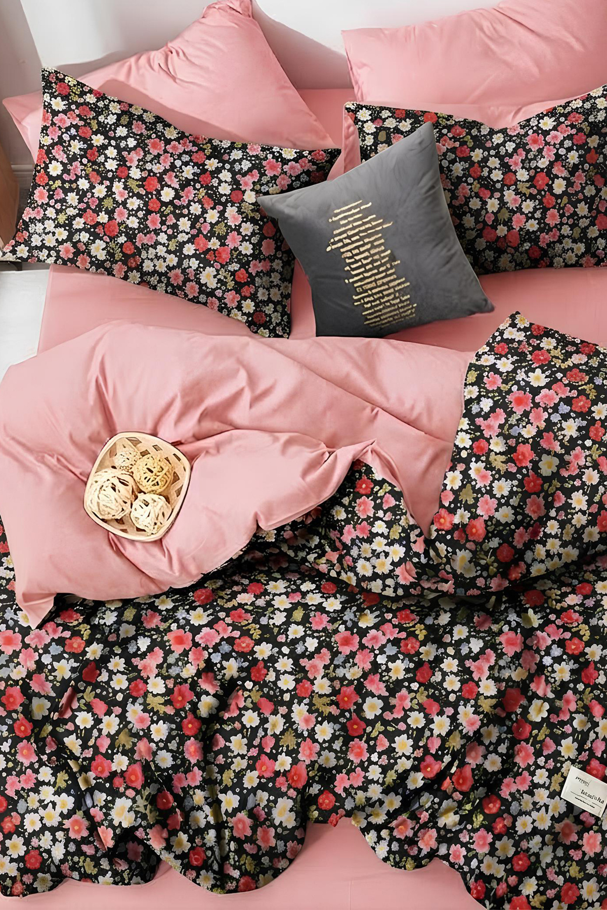 ميزات طقم غطاء لحاف مع ملاءة مطاطية مزدوجة اللون بنفسجي سلموني من İQON