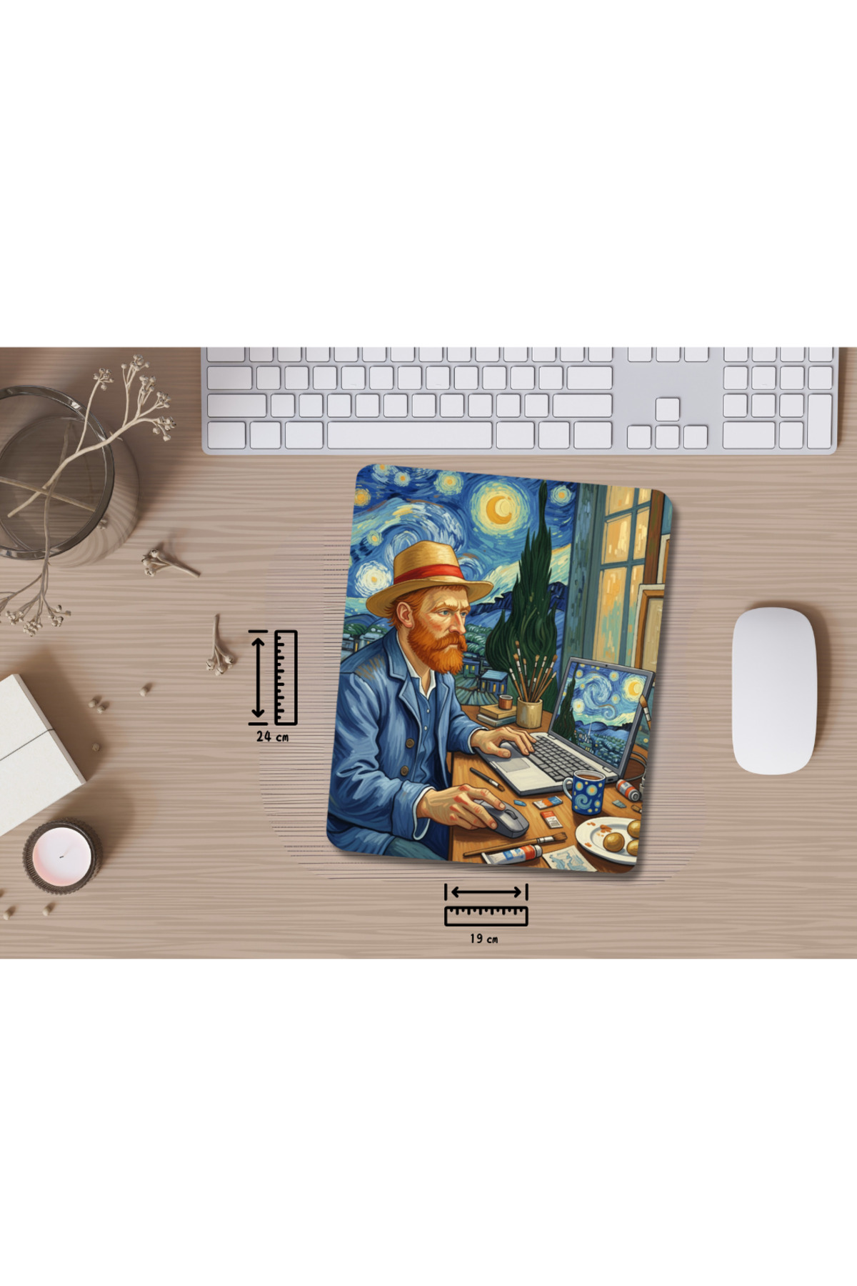 IVART لوحة ماوس مستطيلة الشكل بتصميم فان جوخ من ريسينج ميلر، مزودة بسوار معصم