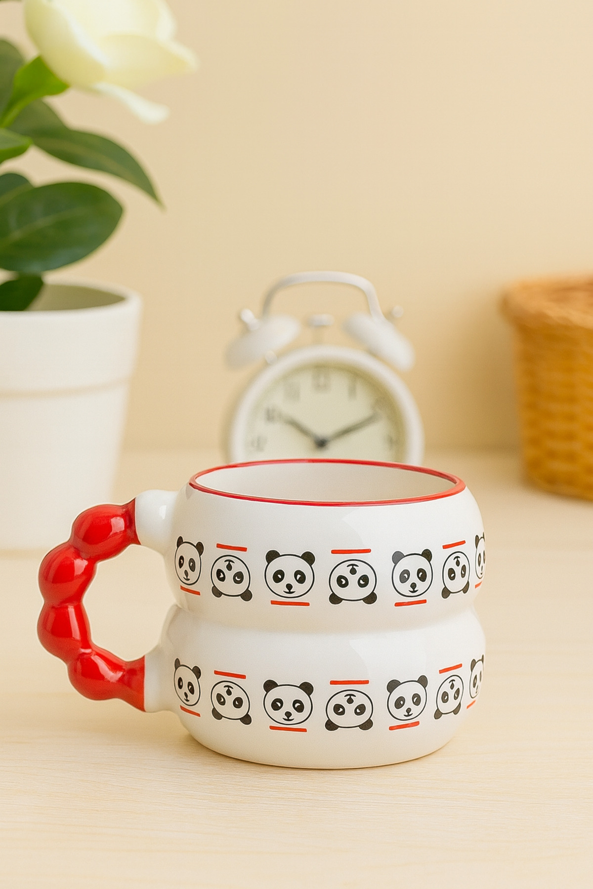 ميزات كوب سيراميك مصنوع يدويًا بالكامل مع مقبض مزين بالخرز ونقش الباندا من İZart