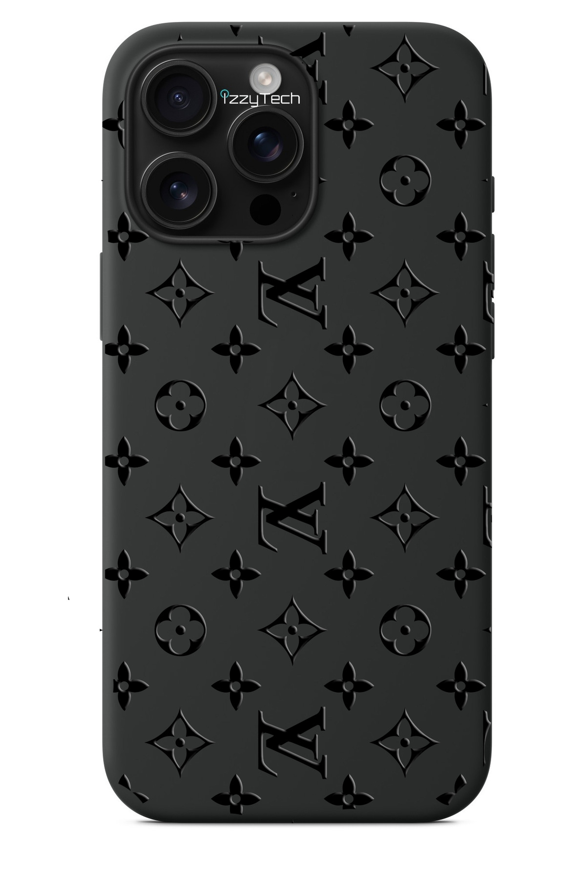 ميزات حافظة هاتف سوداء متوافقة مع iPhone 11 - نمط مونوغرام فاخر بطلاء لامع من izzytech