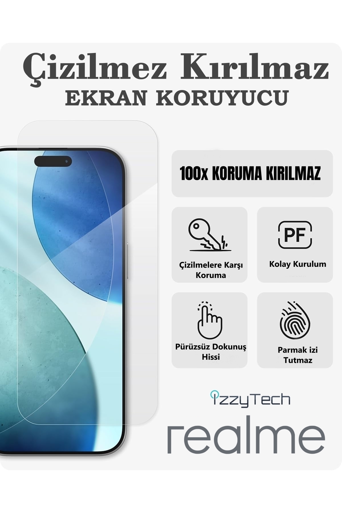 ميزات واقي شاشة نانو 9H من ريلمي C75 | طلاء كامل | غير قابل للكسر | عالي الوضوح وشفاف من izzytech