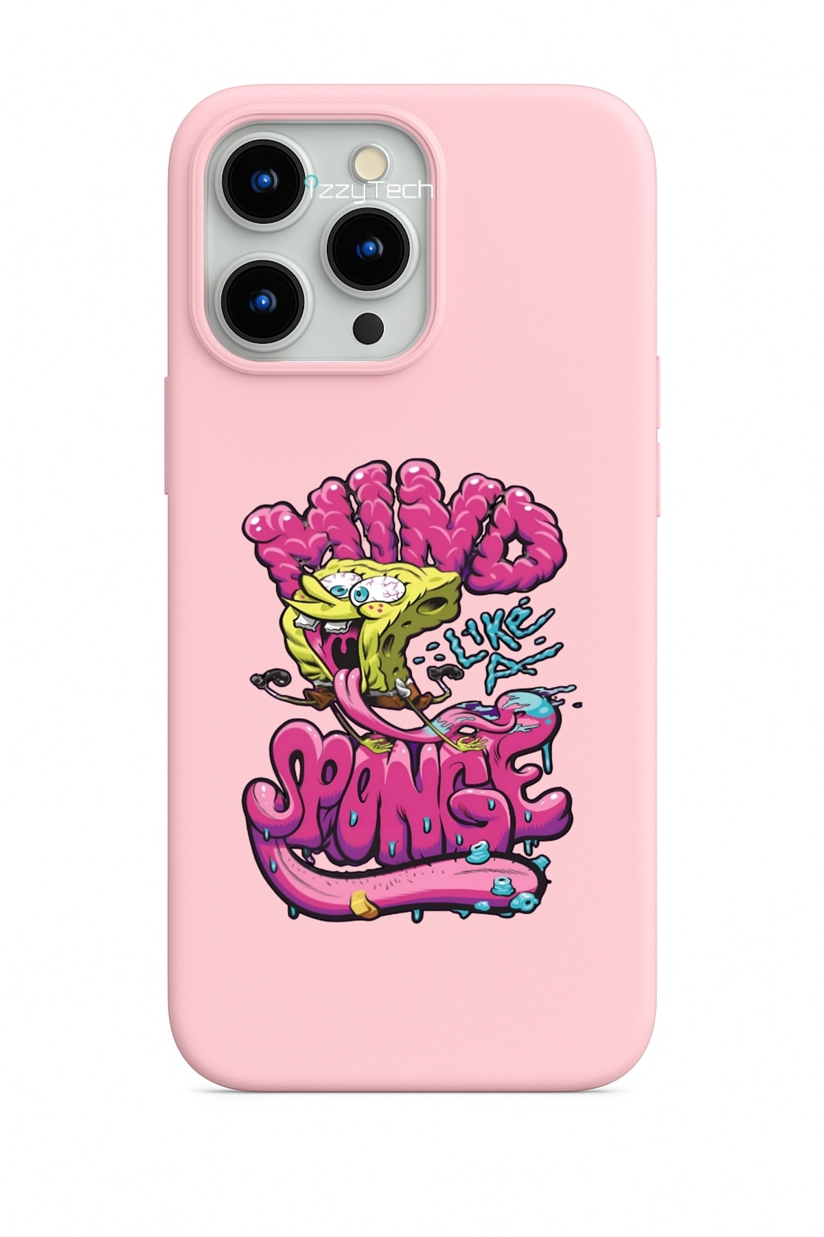 izzytech سبونج بوب جرافيتي - نمط شخصيات كرتونية من السيليكون الوردي - متوافق مع آيفون 13 برو