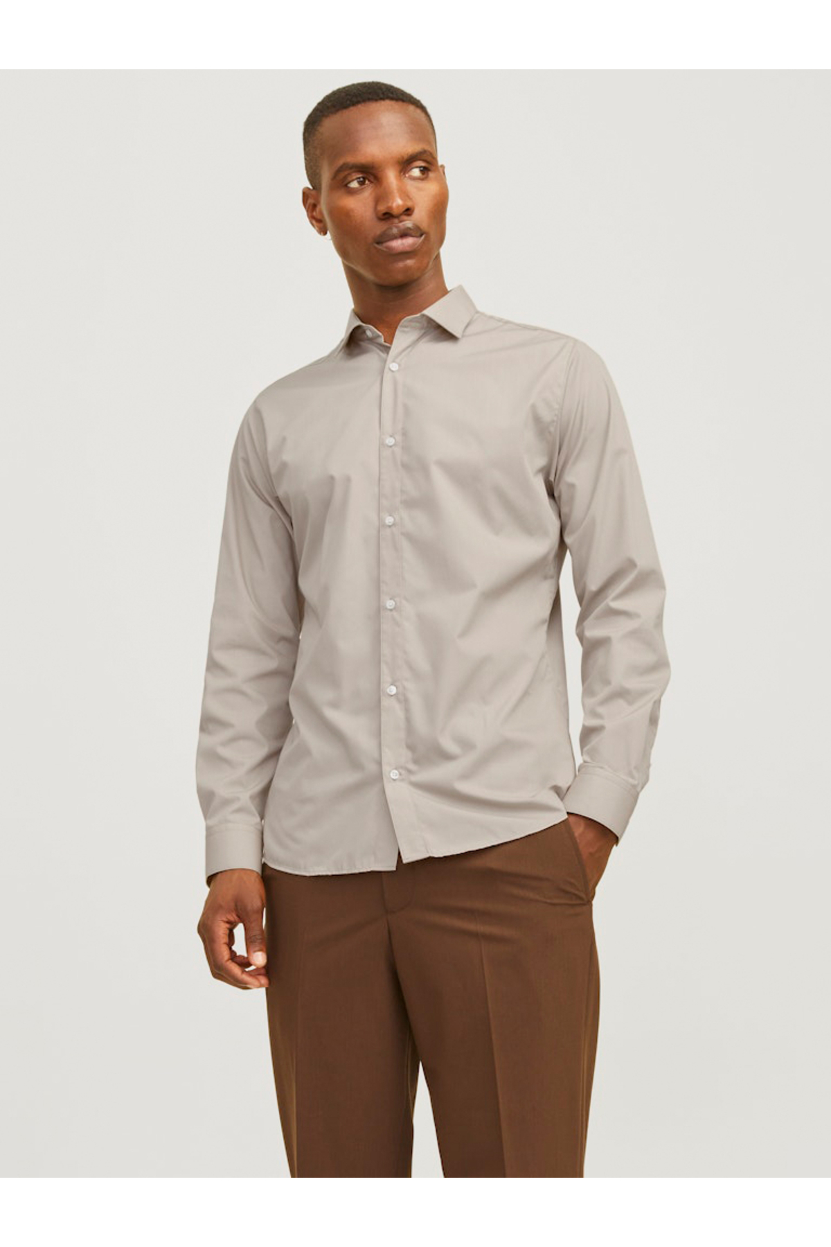 ميزات قميص سليم فيت سادة مع أزرار من Jack & Jones