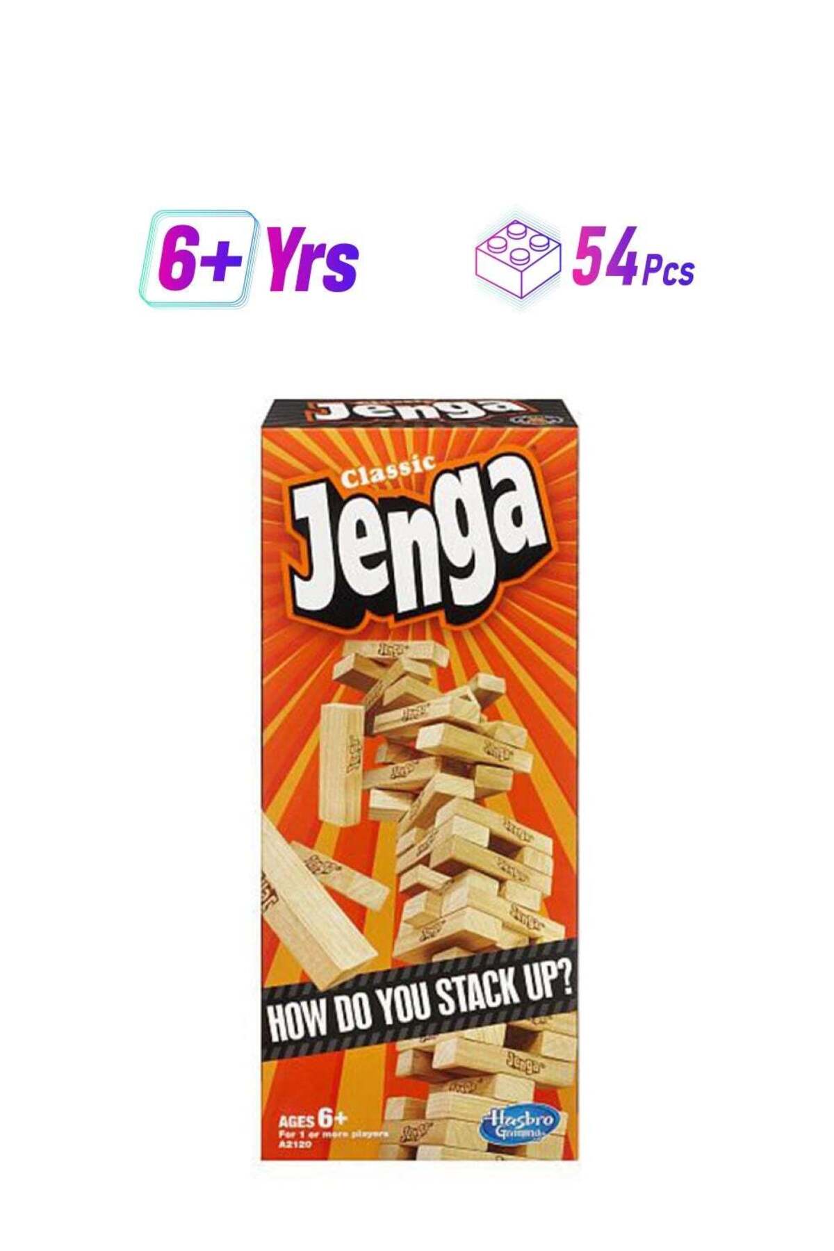 ميزات مجموعة بناء مكعبات كلاسيكية قابلة للتكديس من هاسبرو جيمنج A2120، مكونة من 54 قطعة من Jenga