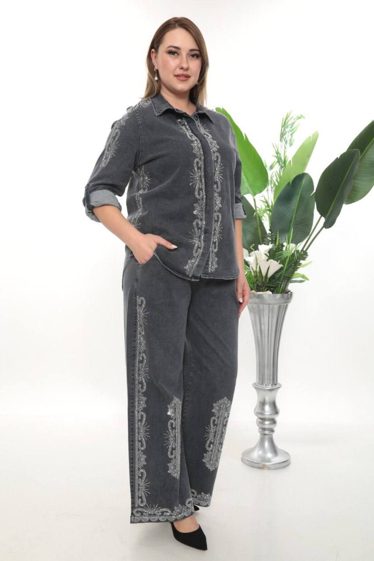 ميزات طقم مكون من قطعتين لامع بنمط عرقي من JERFİ