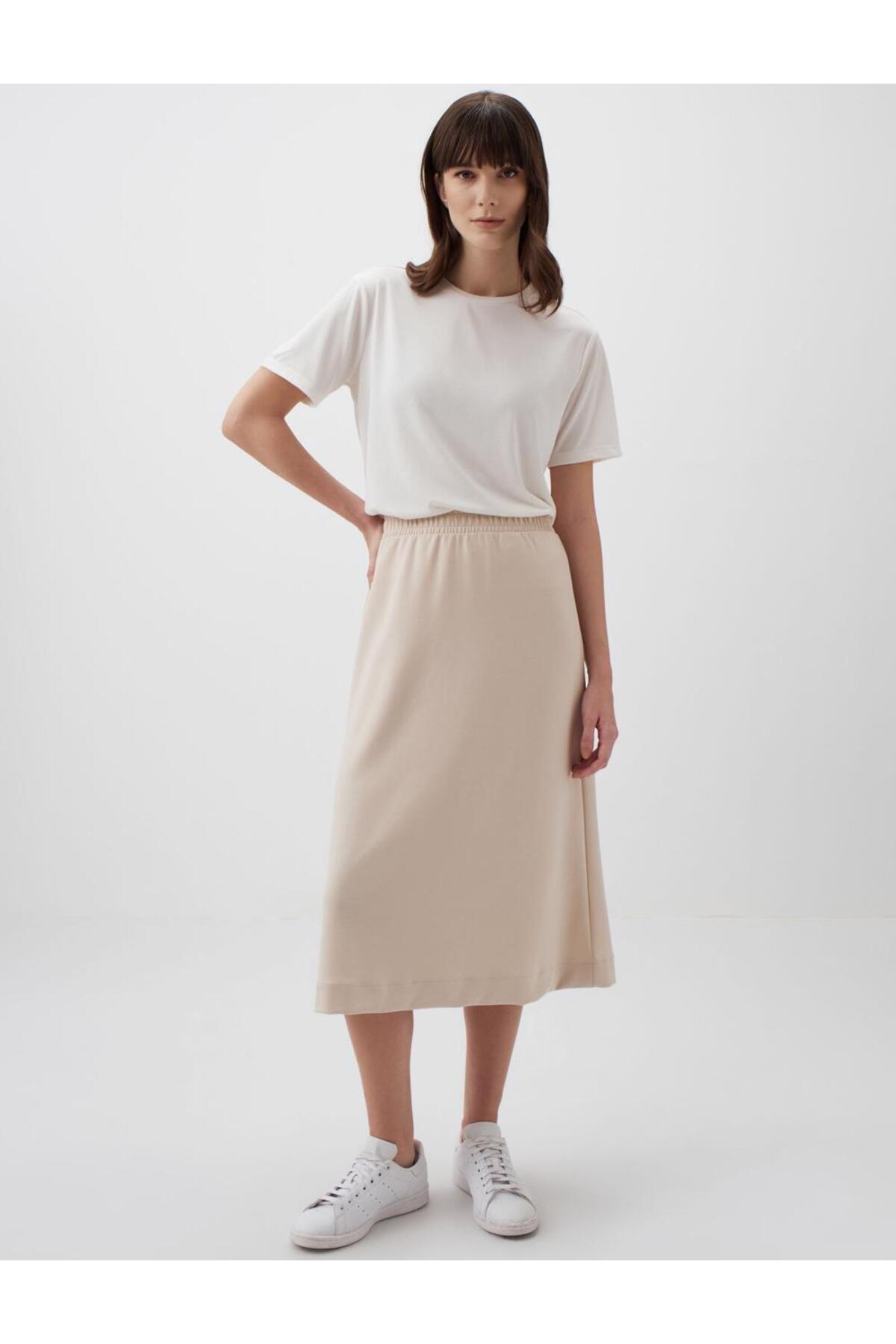 ميزات تنورة ميدي مريحة أساسية بخصر عادي باللون البيج من Jimmy Key