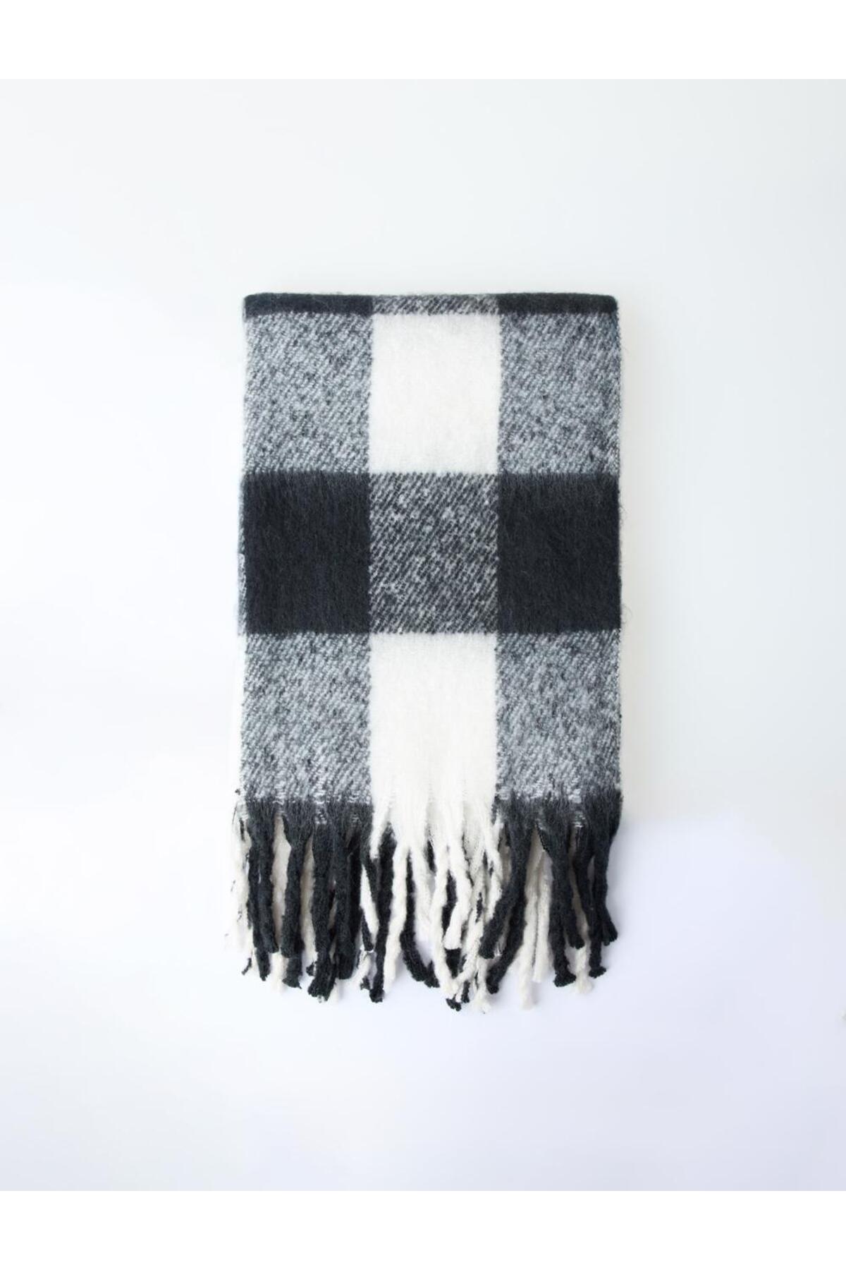 Jimmy Key وشاح أسود منقوش بشراشيب