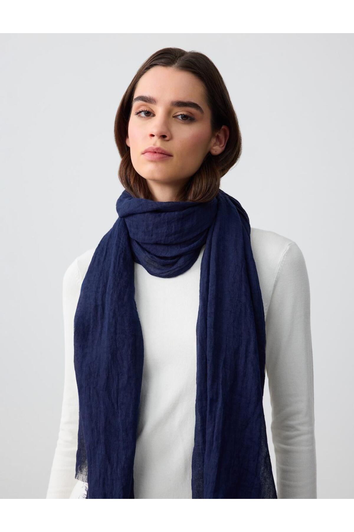 ميزات شال أزرق داكن من Jimmy Key