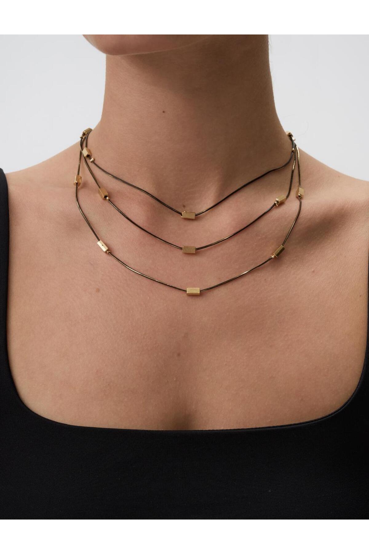 Jimmy Key قلادة ثلاثية قابلة للتعديل بأشكال مستطيلة مختلطة