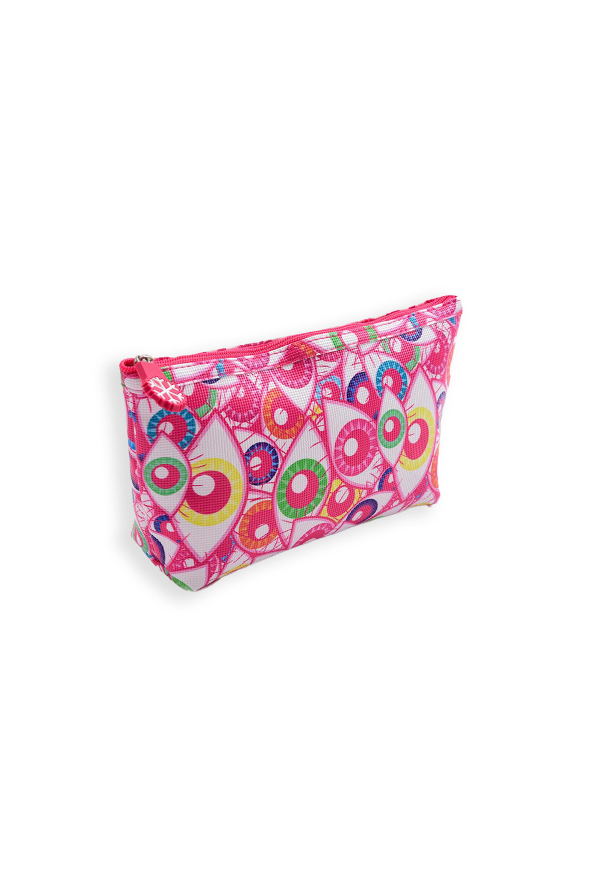 Juene حقيبة مكياج مستطيلة كبيرة باللون الوردي بنمط عين مميز