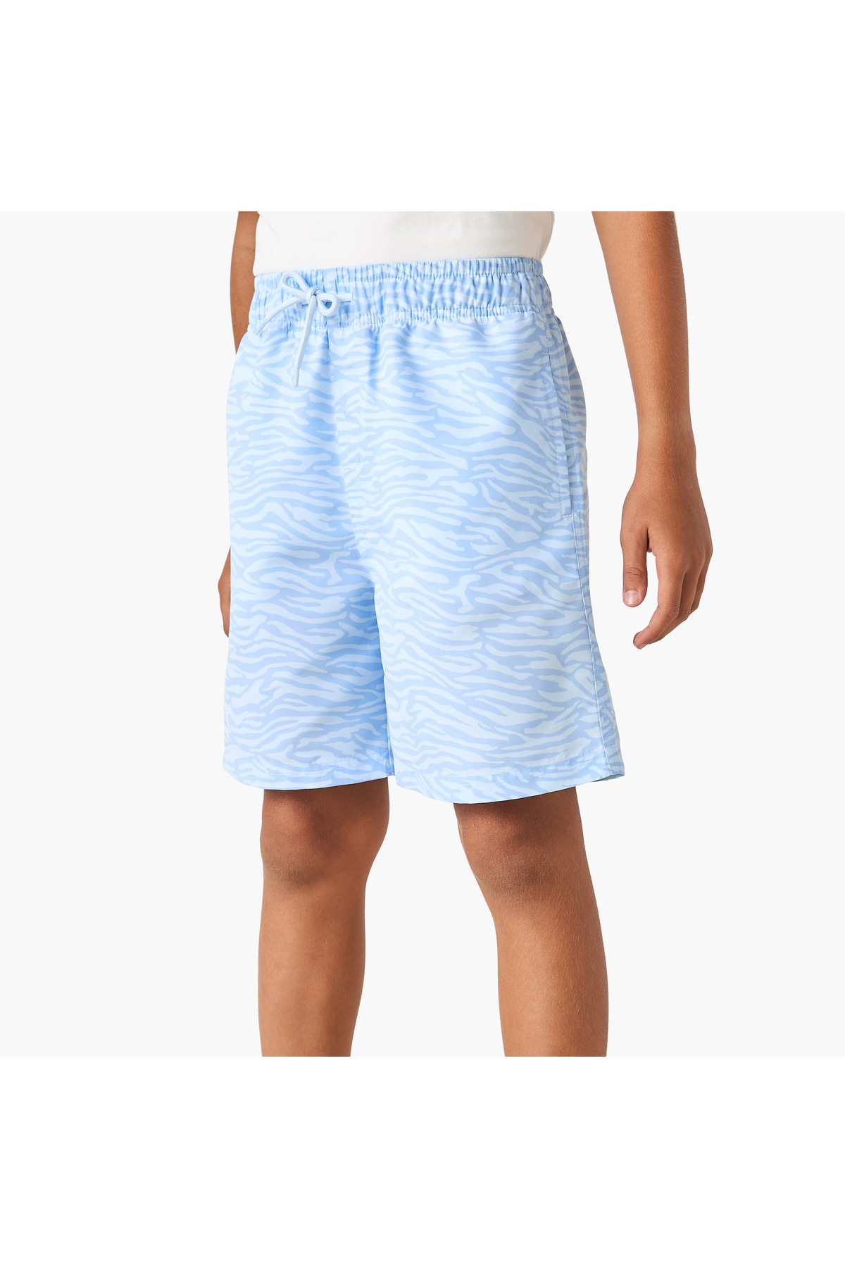 ميزات شورت سباحة مطبوع برباط مطاطي وجيوب من Juniors