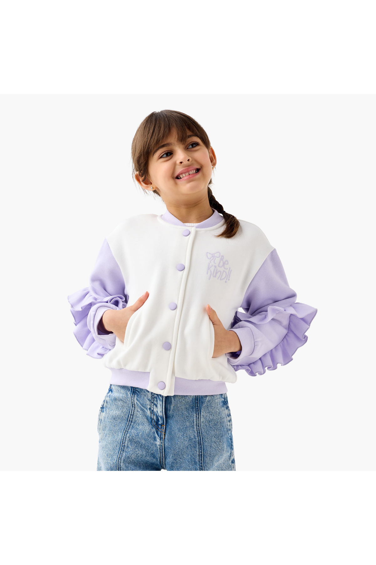 ميزات جاكيت بأزرار أمامية مكشكشة وجيوب من Juniors