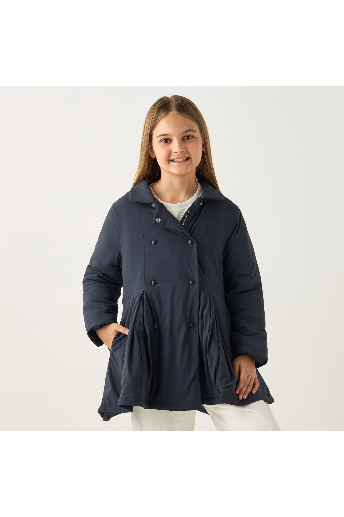 ميزات جاكيت خفيف سادة بأكمام طويلة وأزرار للإغلاق من Juniors