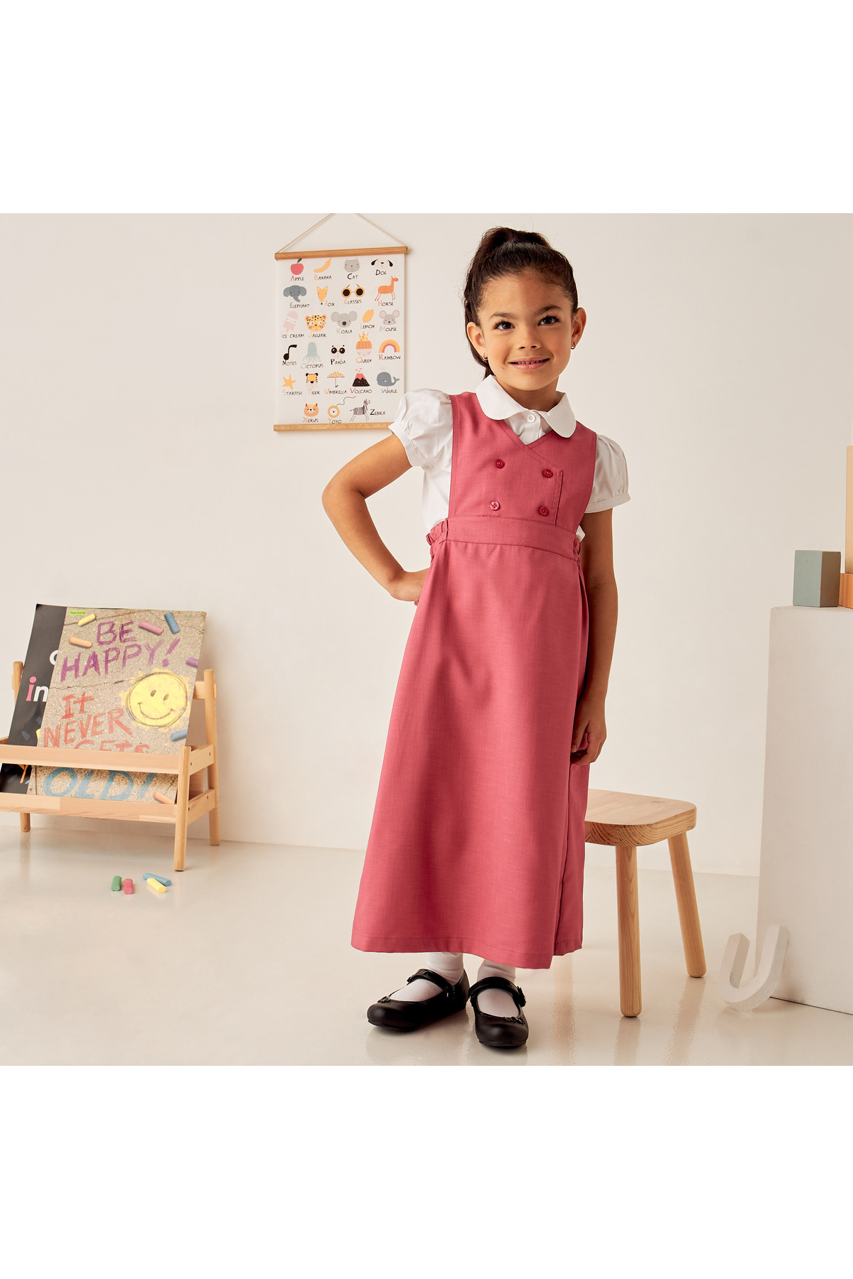 Juniors مريلة سادة برقبة على شكل حرف V وتفاصيل أزرار