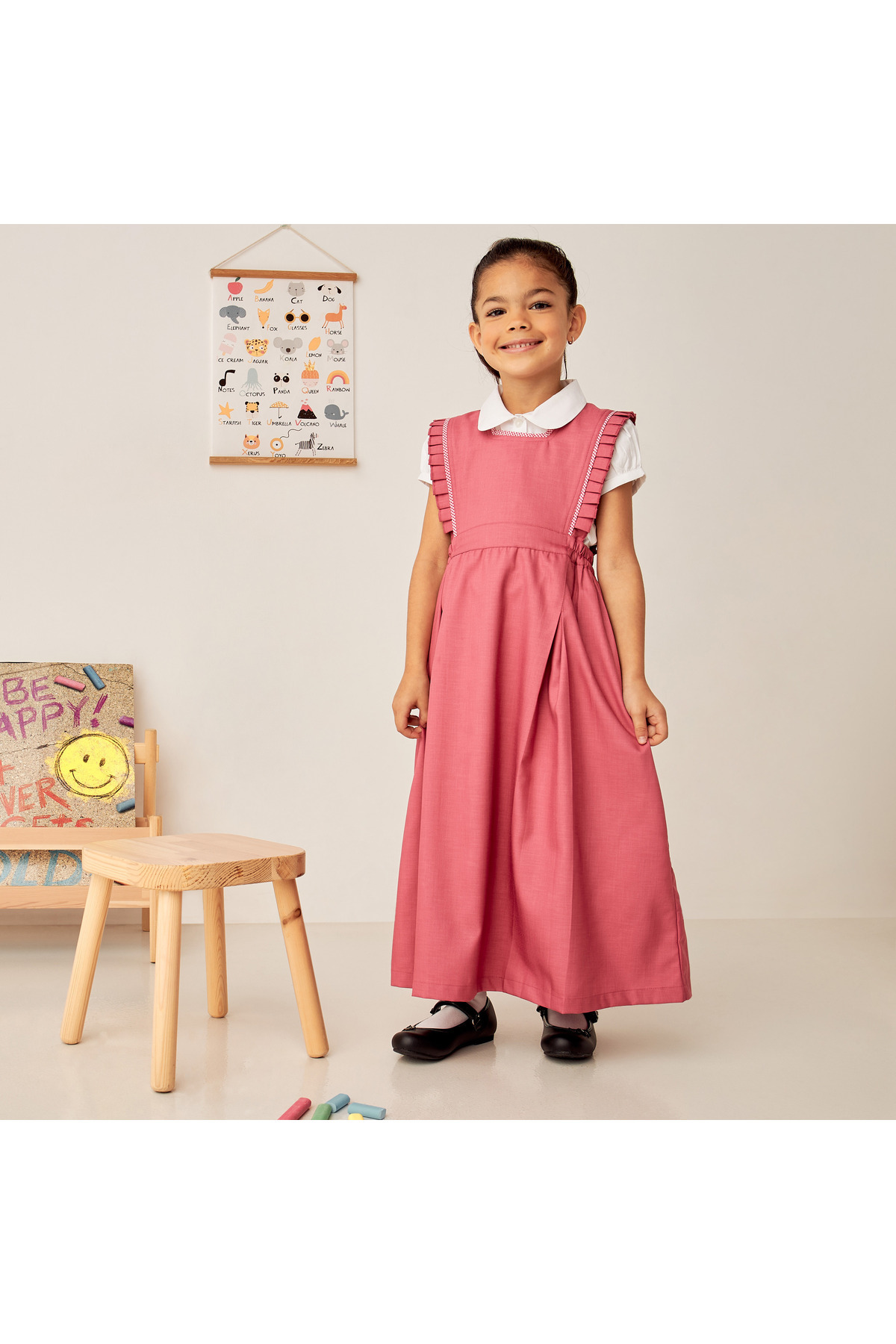 Juniors مريلة سادة برقبة مربعة مع حواف منقوشة ومطوية