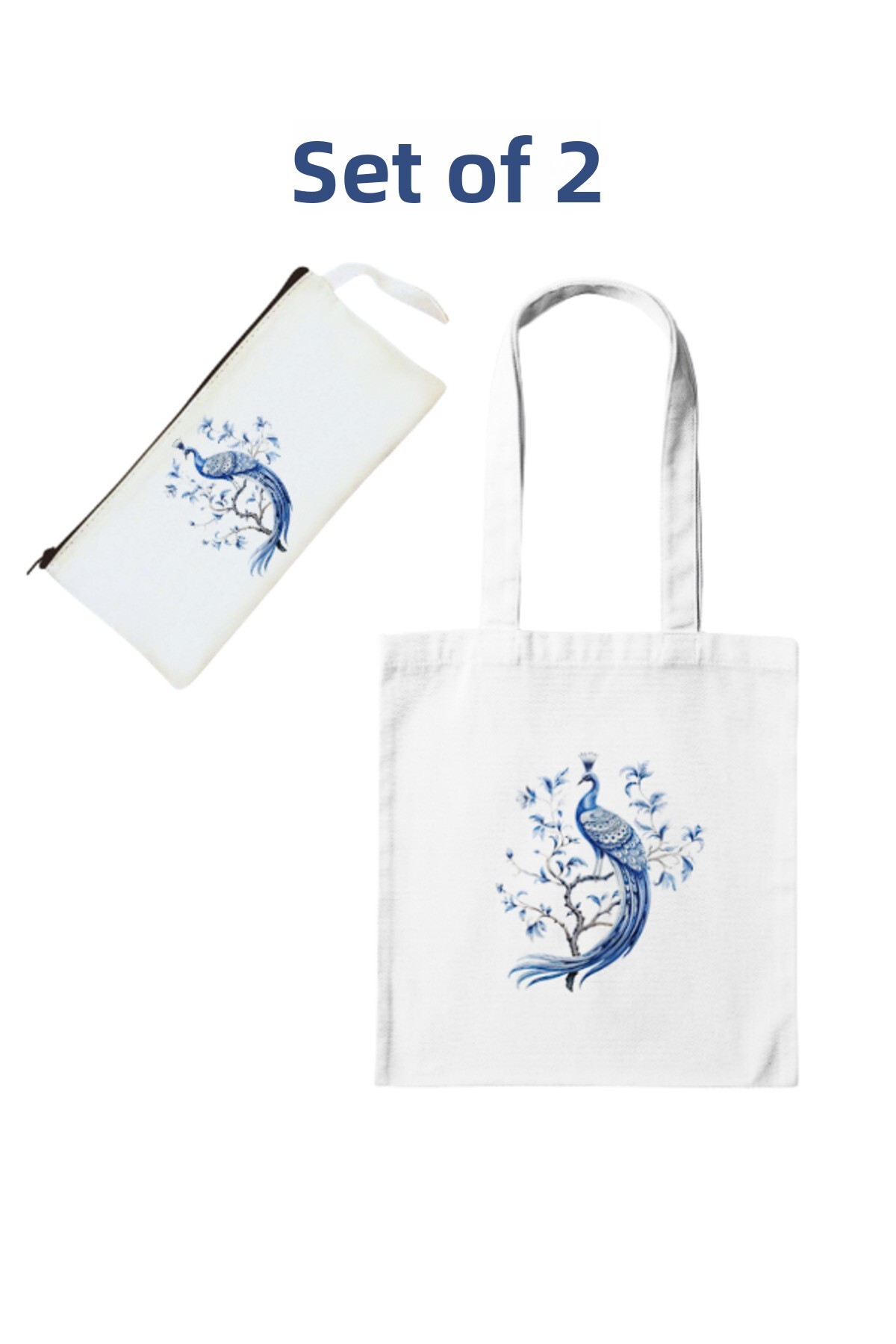 junobi مجموعة الطاووس ذات النمط الأصلي - حقيبة قماشية + حامل أقلام