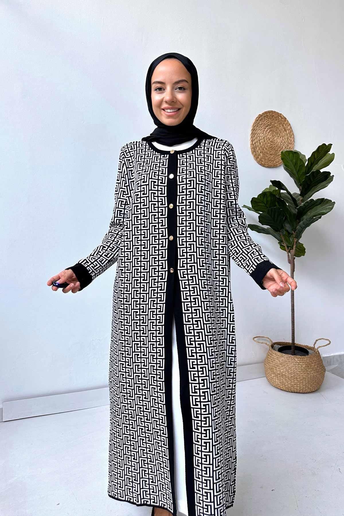 Ka Hijab سترة تيشرت نسائية محتشمة بنقشة سوداء/بيضاء