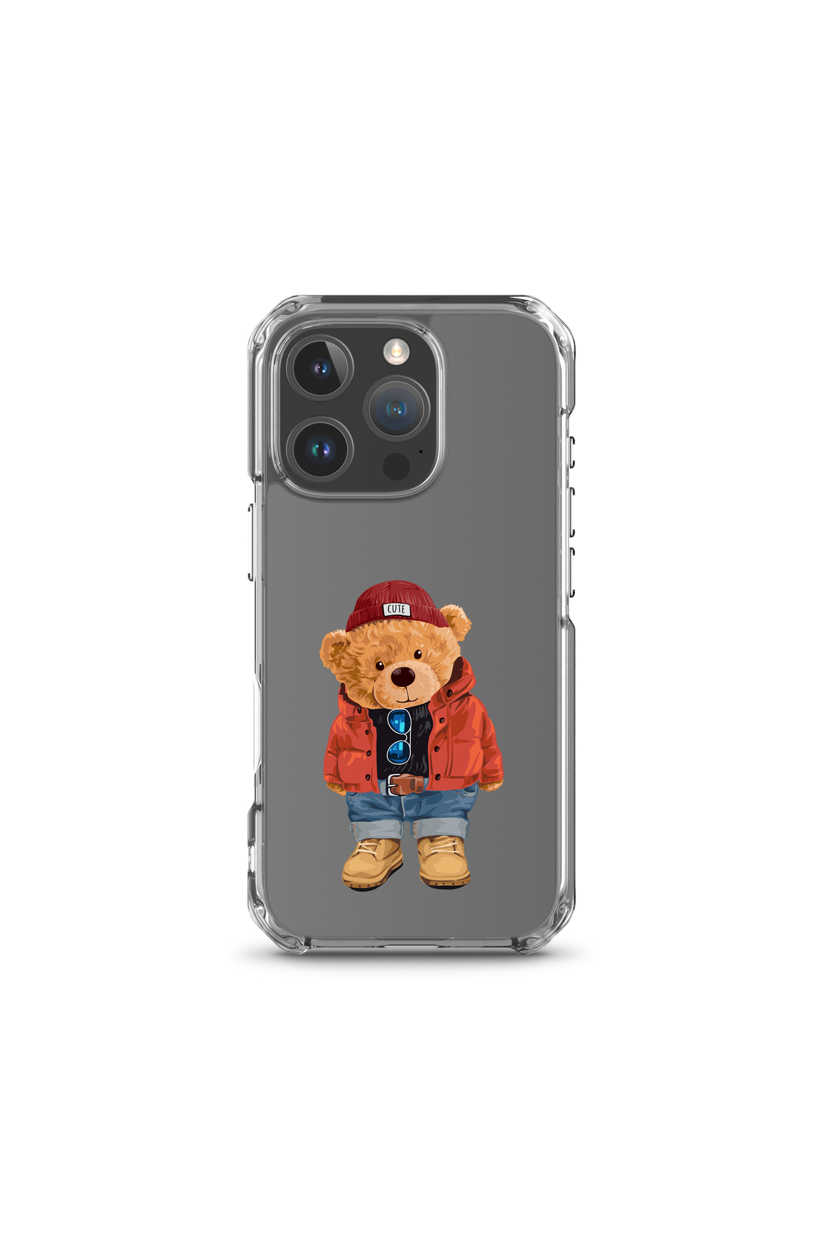 ميزات حافظة إطلاق مطبوعة على شكل دب تيدي متوافقة مع آيفون 16 برو من KaffCase