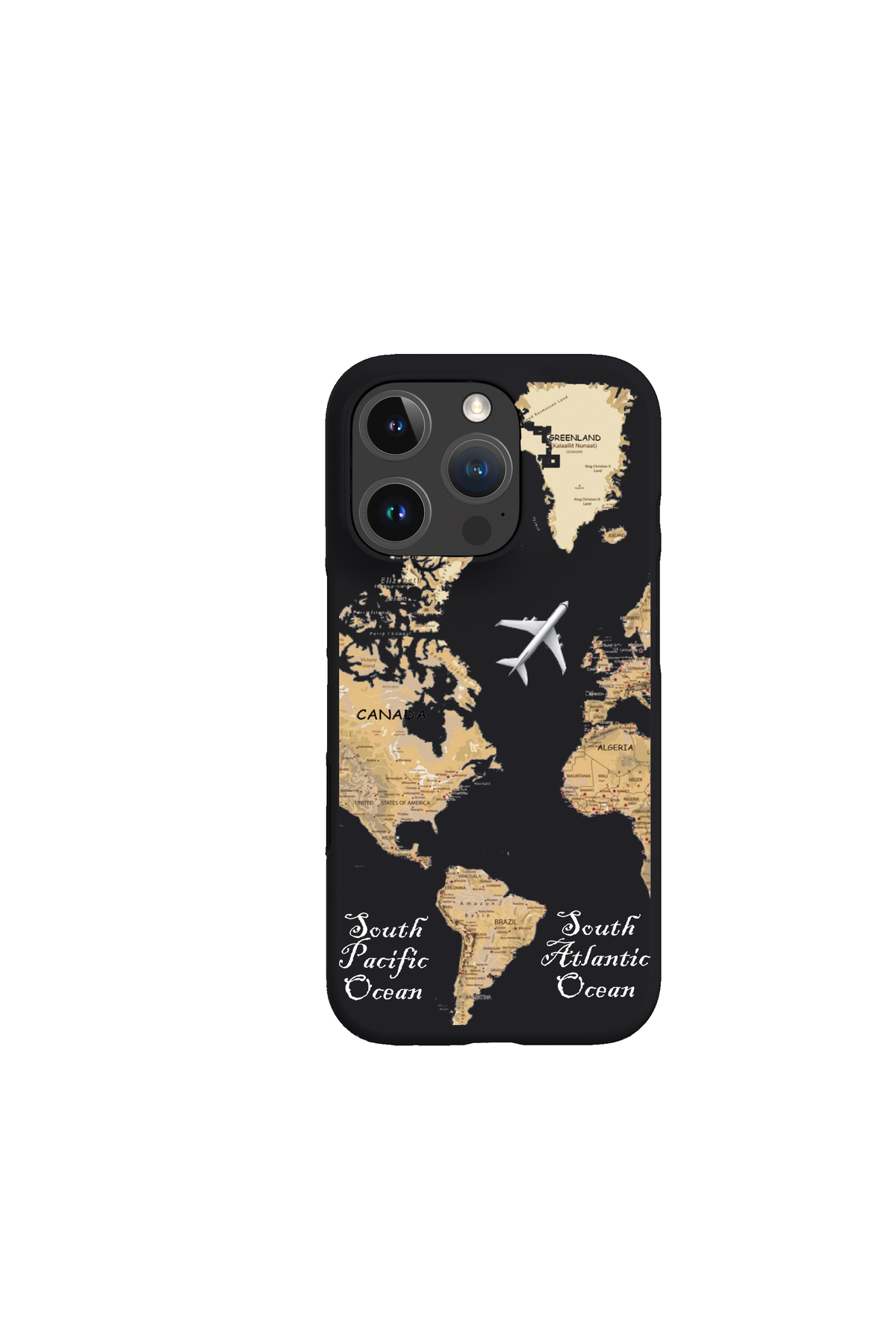 ميزات حافظة هاتف فاخرة متوافقة مع آيفون 16 برو بنمط خريطة العالم من KaffCase