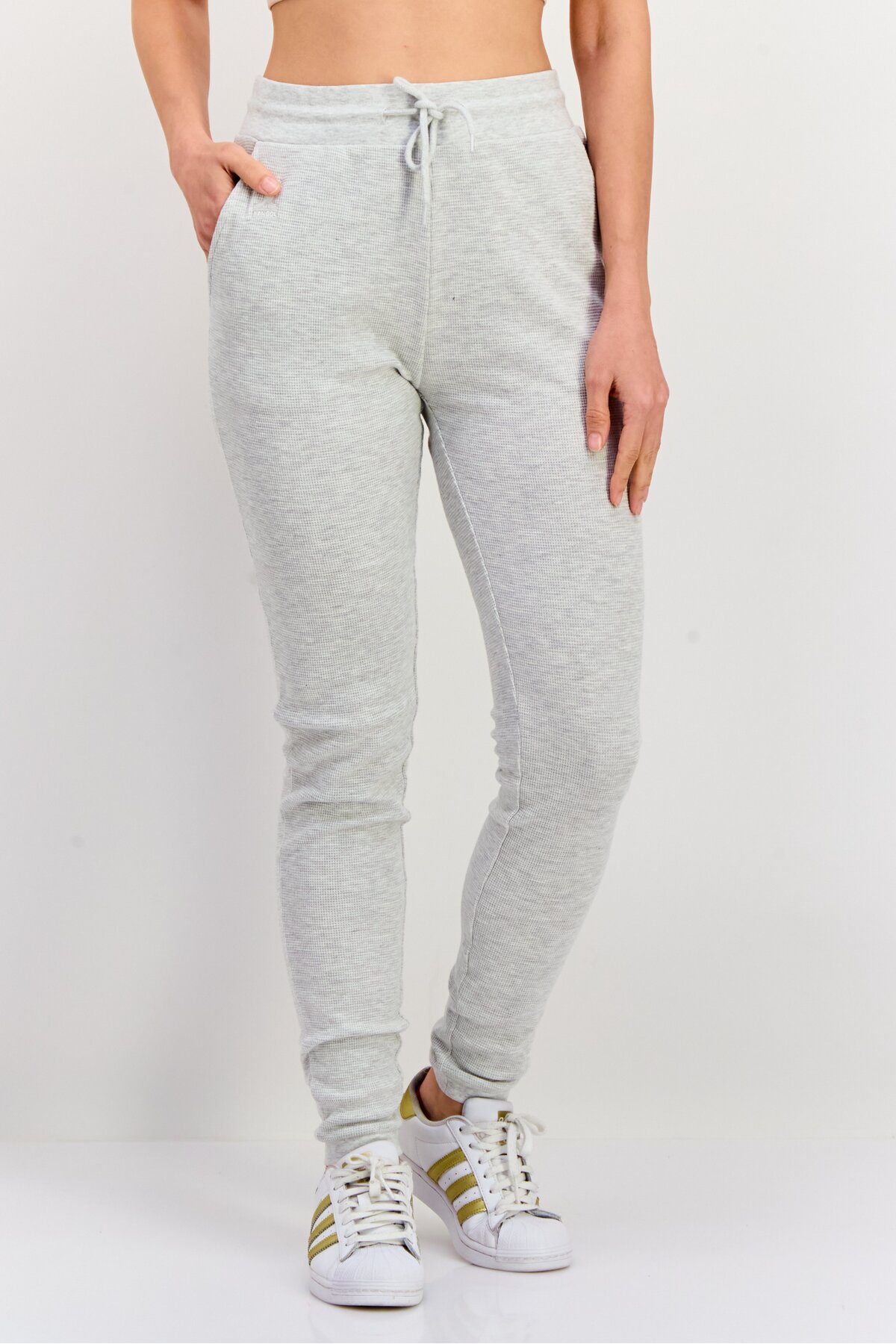ميزات بنطال رياضي سادة برباط وقصّة عادية للنساء، رمادي من Kangol