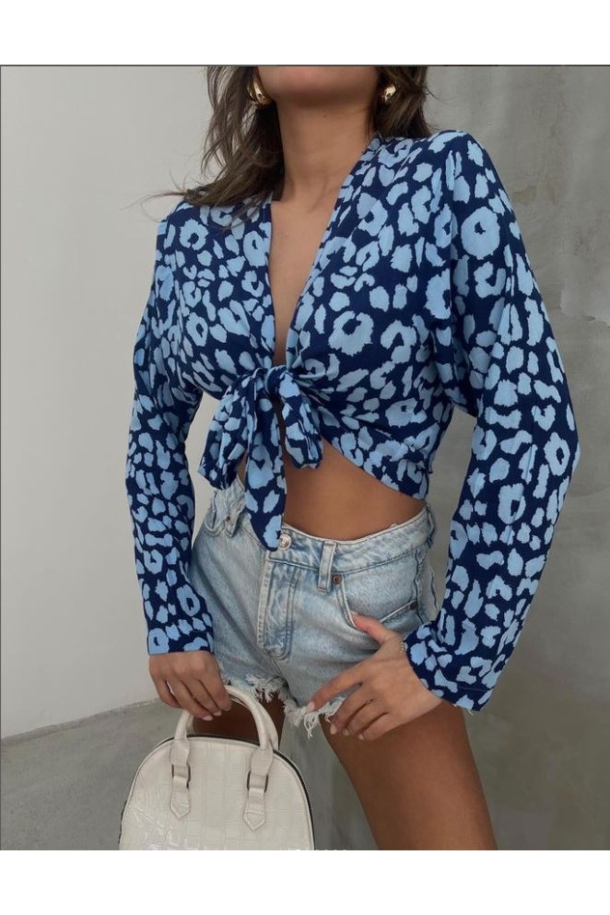 ميزات بلوزة منقوشة بربطة أمامية من Kaplanbutik