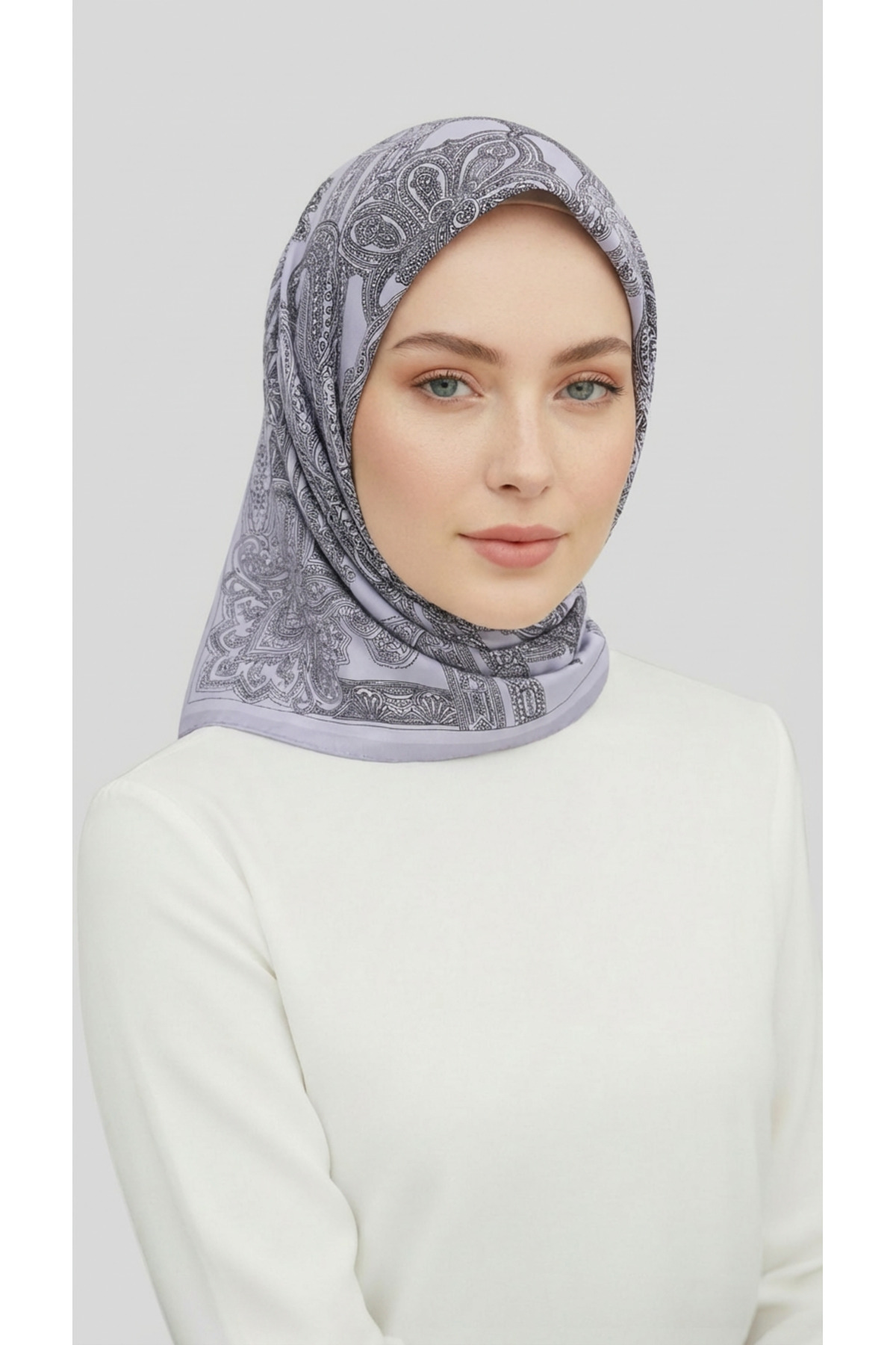 Karaca Eşarp وشاح من البوليستر بنمط عرقي - رمادي