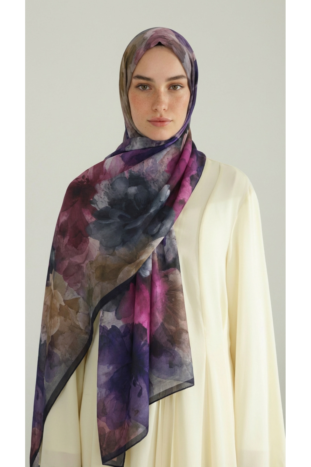 ميزات شال قطني بنقشة زهور من Karaca Eşarp
