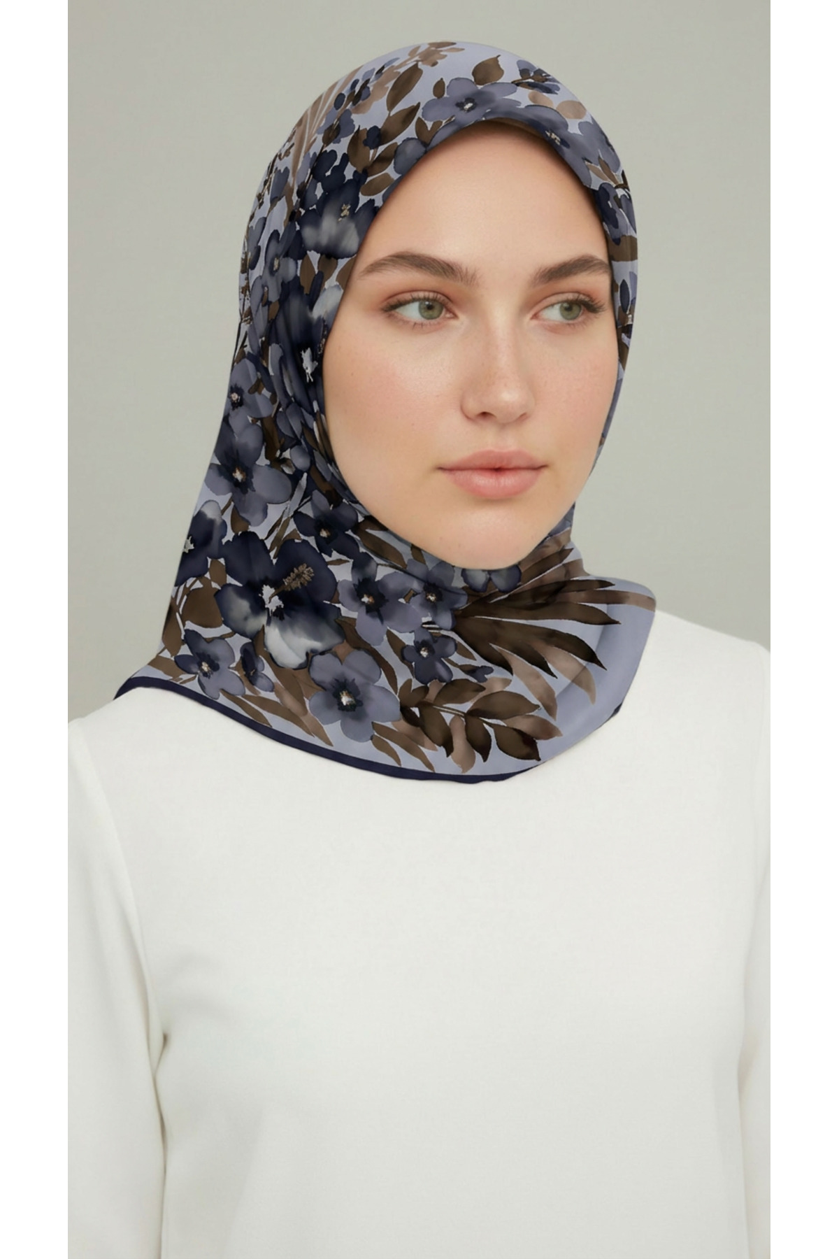 Karaca Eşarp وشاح من الرايون بنقشة الزهور - رمادي