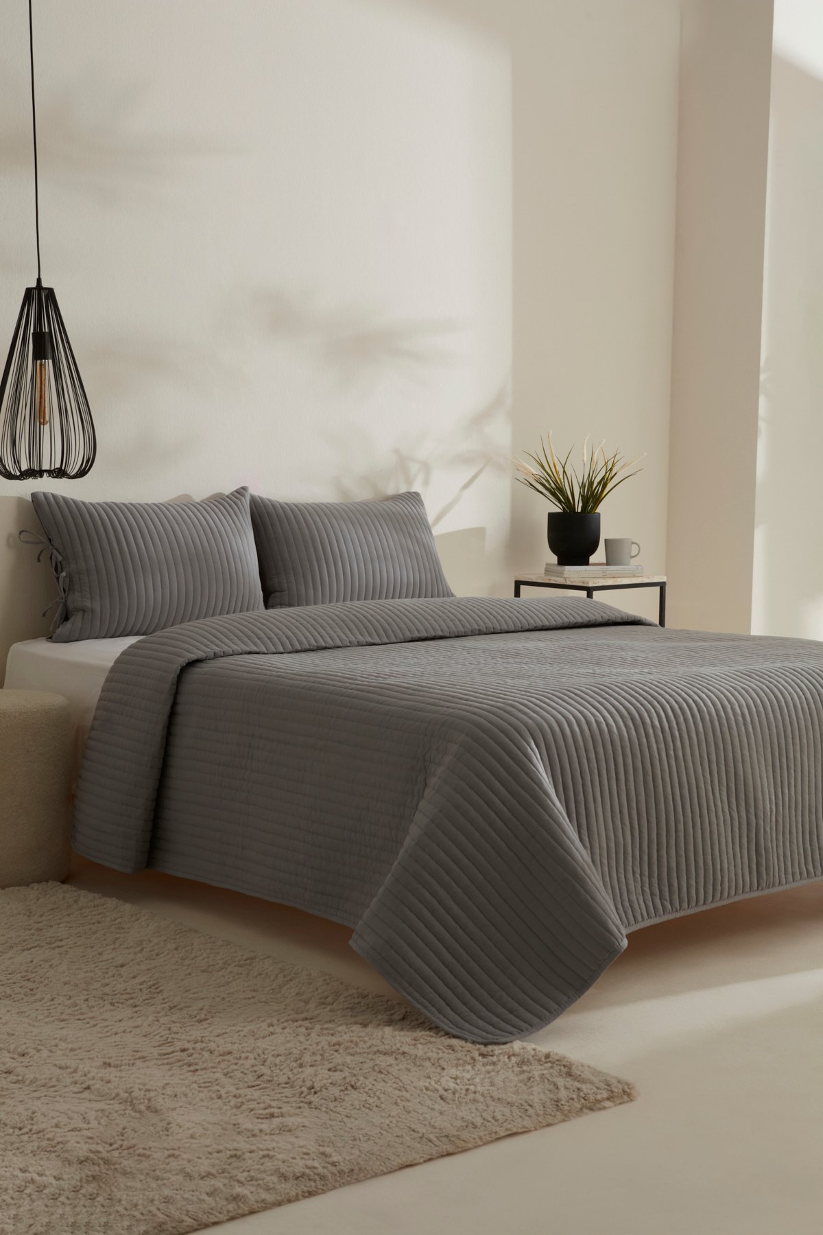 ميزات طقم مفرش سرير مزدوج باللون الرمادي من إيلي من Karaca Home