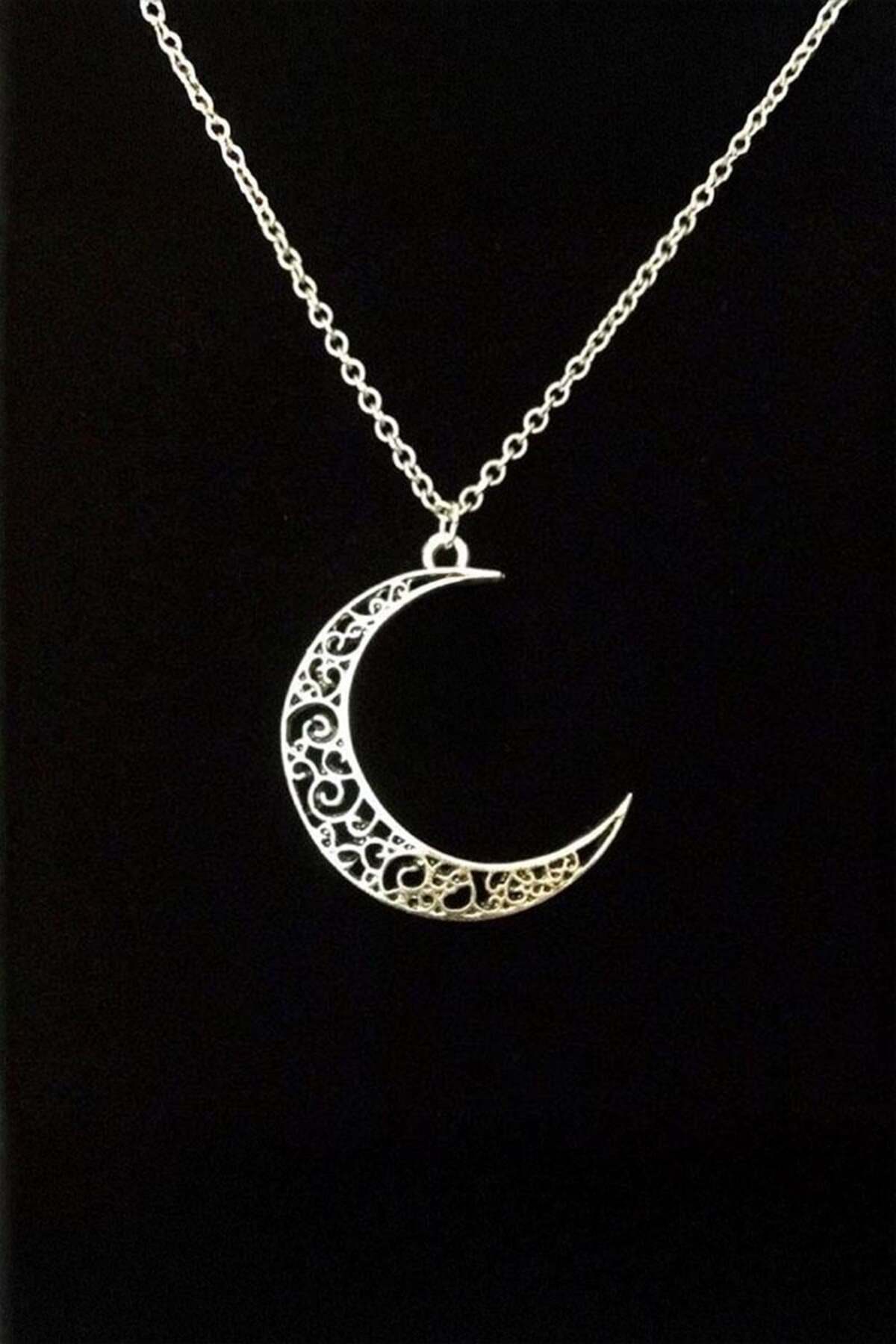ميزات قلادة قمر فضية أصلية منقوشة من Karakedi
