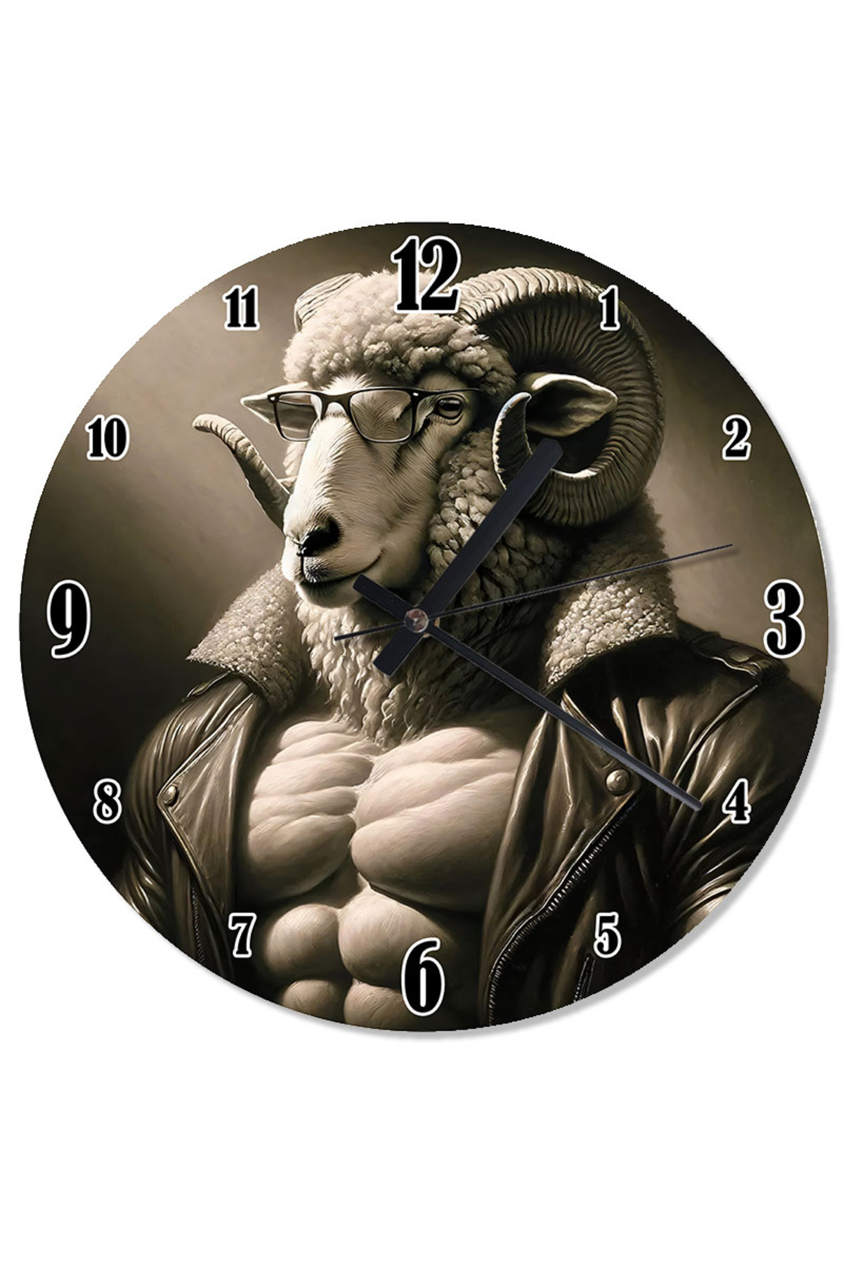 karizmart ساعة حائط بتصميم خروف مع سترة جلدية