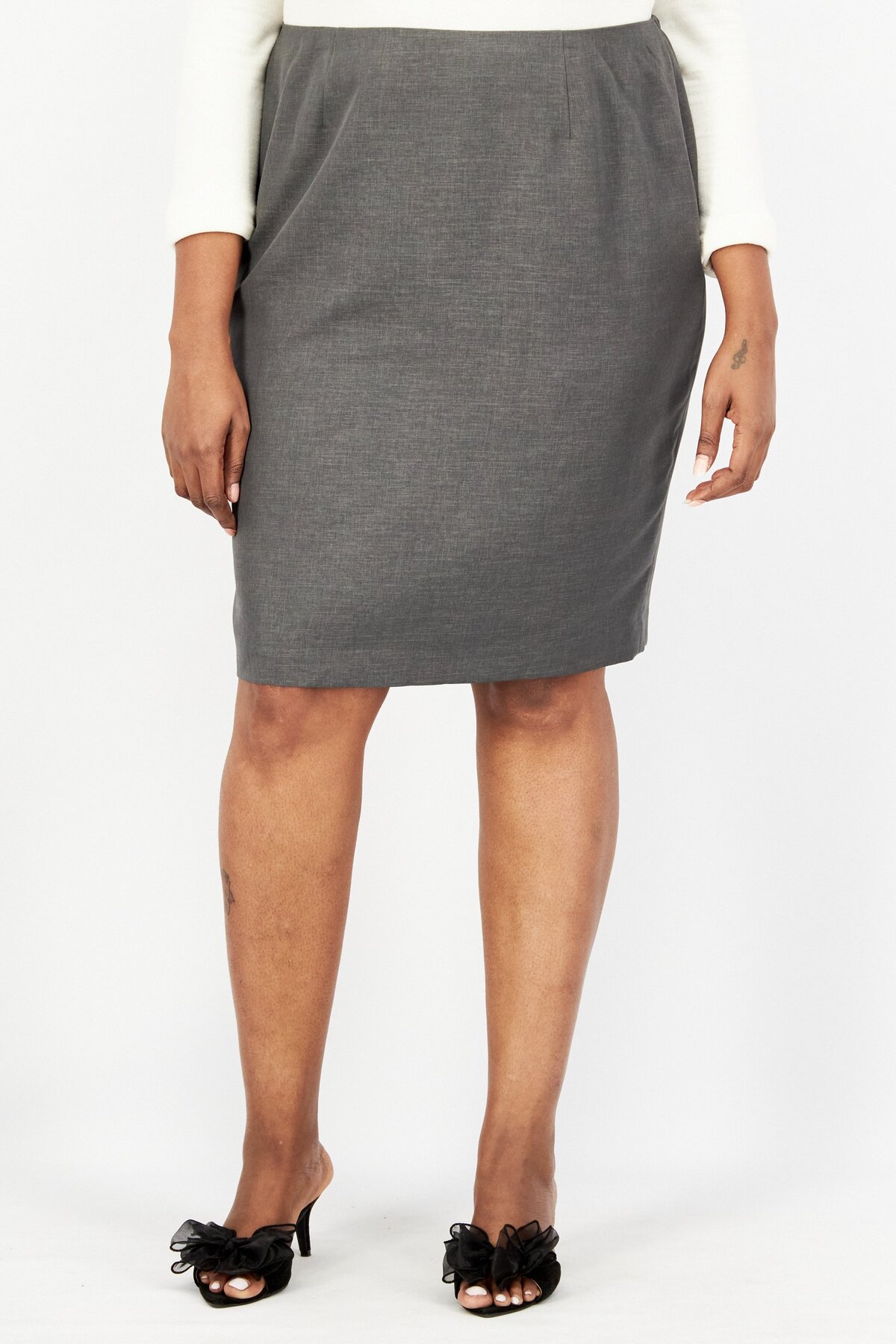 ميزات تنورة ميدي سادة للنساء بمقاسات كبيرة، رمادية من Kasper